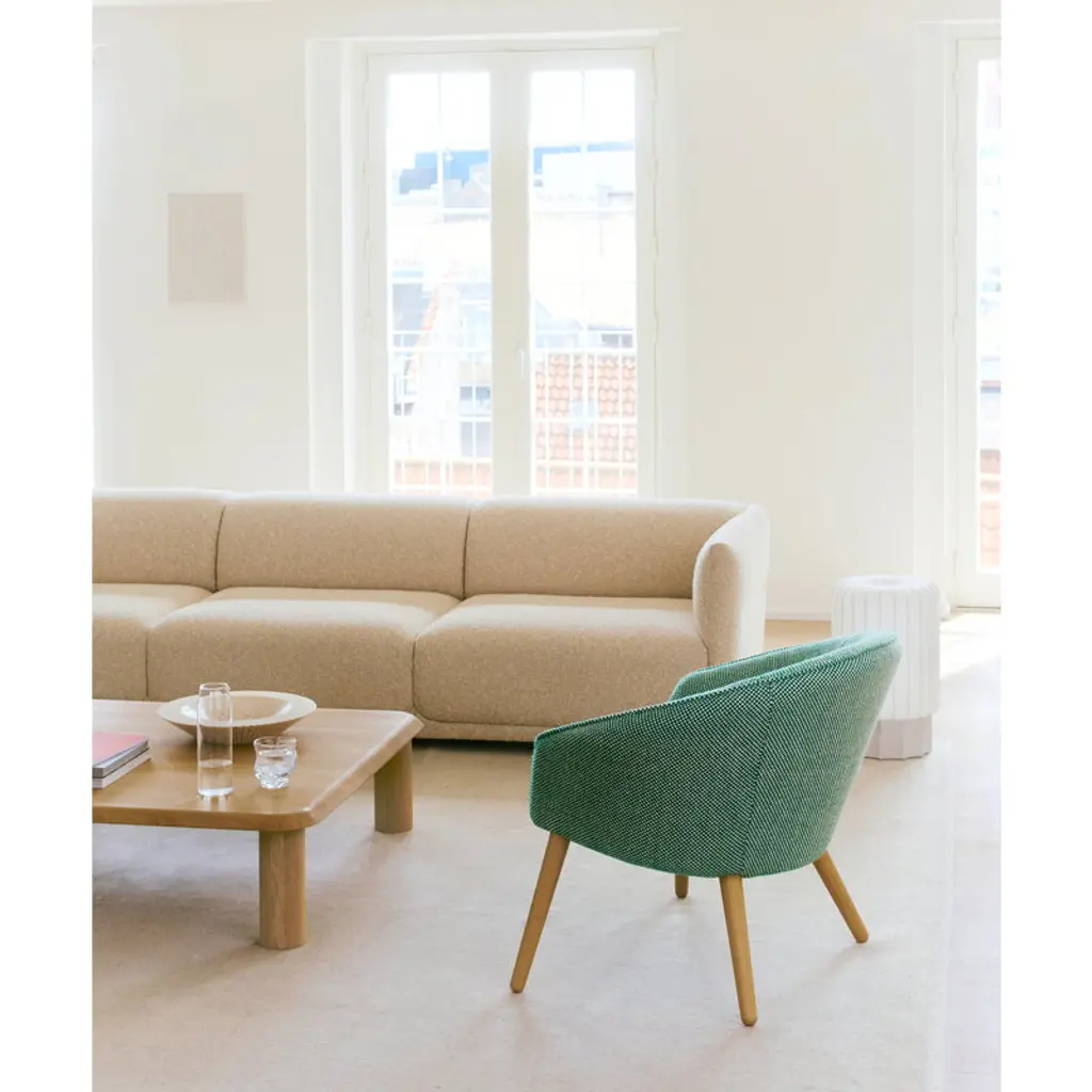 Fredericia's Nami sofa combines sleek Scandinavian design with harmonious Japanese minimalism. The result is a casual yet elegant sofa with a streamlined shape that suits various interiors and spaces, from the home living room to the hotel lobby. Designed by Damian Williamson, the Nami sofa features a robust wooden structure upholstered with a cotton blend fabric and topped with plush sofa cushions. The soft seat cushions, together with the high armrests, provide privacy and comfort for those curled up on the sofa. Aptly named "Nami," after the Japanese word for "wave," the sofa’s organic and flowing design is reminiscent of the undulating sea.