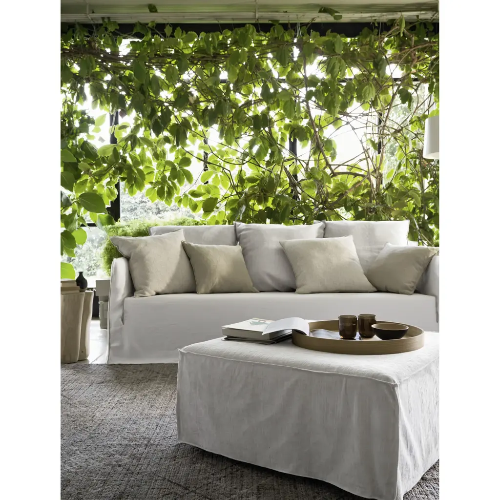 The Gervasoni's Ghost Natural White Lino Sofa is a symbol of refined elegance, featuring a sleek, minimalist design in the Natural Lino Bianco (1000) color. Its extra soft upholstery provides exceptional comfort, while the unique removable cover, adorned with visible stitching, allows for effortless transformation from a polished, sophisticated look to a more relaxed and casual vibe. This versatile design offers luxury and adaptability. Pair it with the equally stylish Ghost armchairs to complete your decor and create an elegant ambiance.