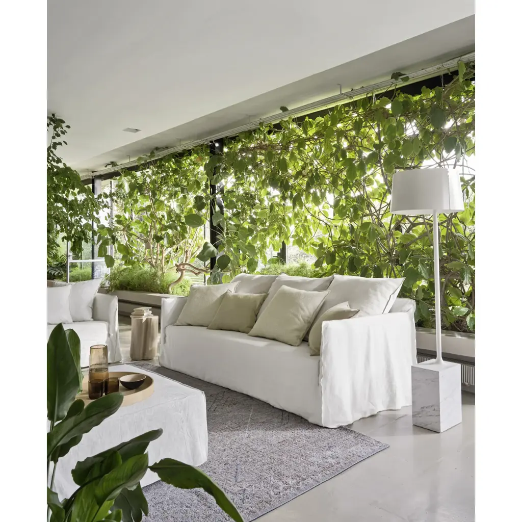 The Gervasoni's Ghost Natural White Lino Sofa is a symbol of refined elegance, featuring a sleek, minimalist design in the Natural Lino Bianco (1000) color. Its extra soft upholstery provides exceptional comfort, while the unique removable cover, adorned with visible stitching, allows for effortless transformation from a polished, sophisticated look to a more relaxed and casual vibe. This versatile design offers luxury and adaptability. Pair it with the equally stylish Ghost armchairs to complete your decor and create an elegant ambiance.