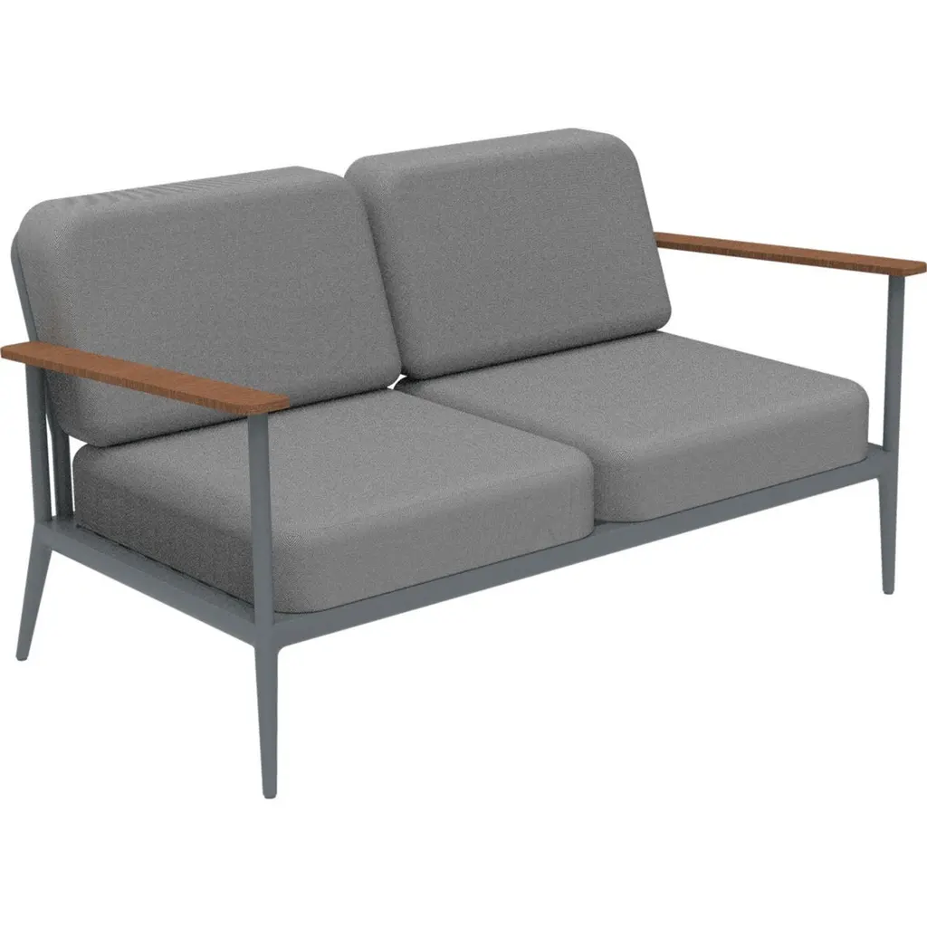Nature grey sofa by MOWEEDimensions: D85 x W151 x H81 cm (seat height 42 cm).Material: Aluminum, upholstery and Iroko Wood.Weight: 32 kg.Also available in different colors and finishes.An unmistakable collection for its beauty and robustness. A tribute to the Valencian manufacturing tradition as a challenge to innovation, making it sustainable and durable. A fresher version, Nature. It presents touches of natural and sustainable wood, which gives warmth and comfort, and makes it a unique collection.Möwee is part of the work, effort and commitment of Gaviota, a leading company in the outdoor sector. It was set up as an independent venture to broaden horizons in the outdoor furniture world, with its own distinctive character and way of doing things. Freshness, simplicity, quality and design are at the heart of its DNA.