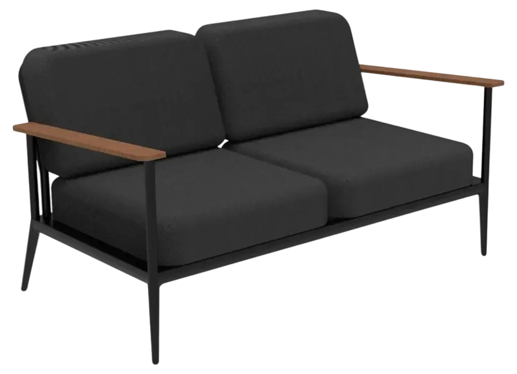Nature Navy sofa by MOWEEDimensions: D85 x W151 x H81 cm (seat height 42 cm).Material: Aluminum, upholstery and Iroko Wood.Weight: 32 kg.Also available in different colors and finishes. An unmistakable collection for its beauty and robustness. A tribute to the Valencian manufacturing tradition as a challenge to innovation, making it sustainable and durable. A fresher version, Nature. It presents touches of natural and sustainable wood, which gives warmth and comfort, and makes it a unique collection.Möwee is part of the work, effort and commitment of Gaviota, a leading company in the outdoor sector. It was set up as an independent venture to broaden horizons in the outdoor furniture world, with its own distinctive character and way of doing things. Freshness, simplicity, quality and design are at the heart of its DNA.