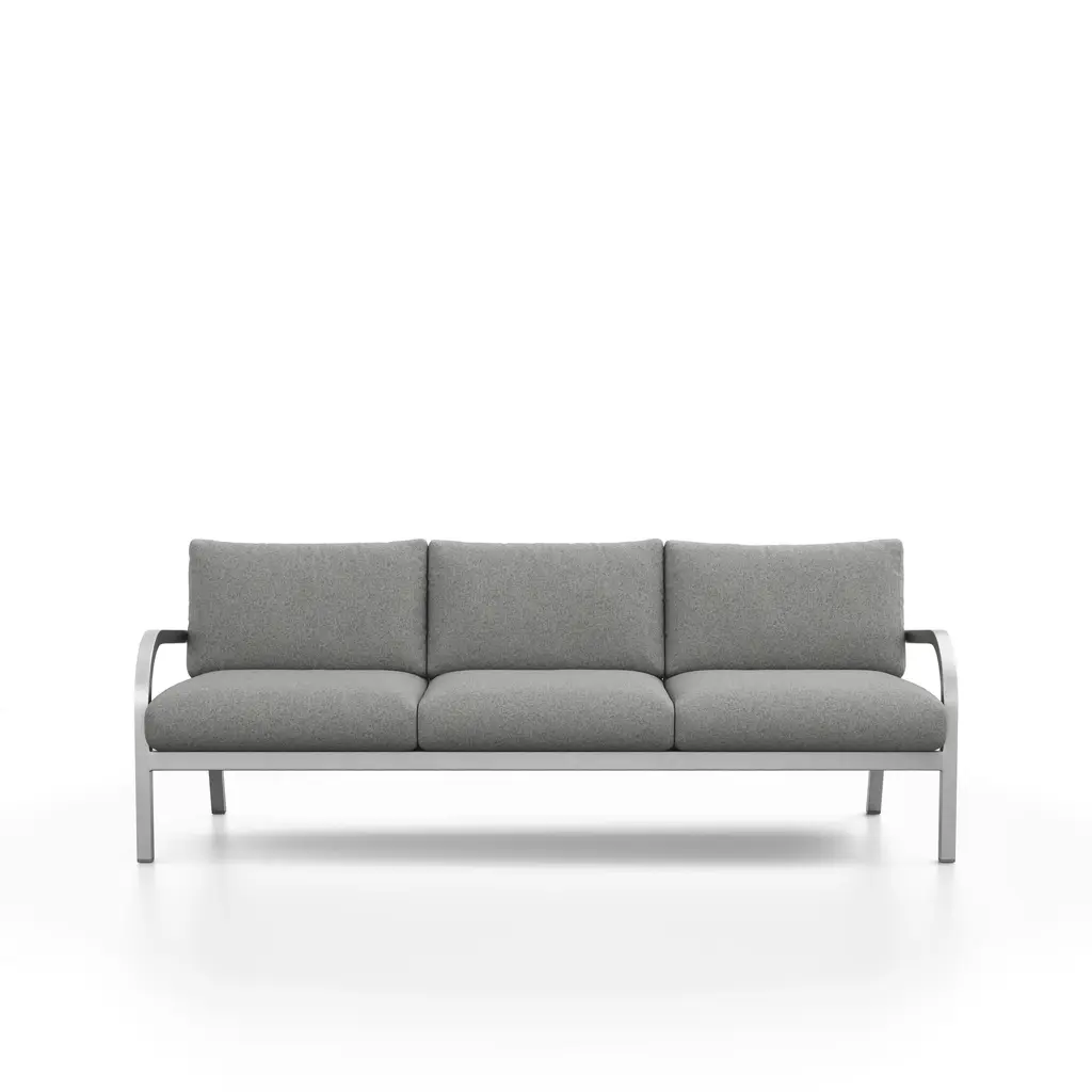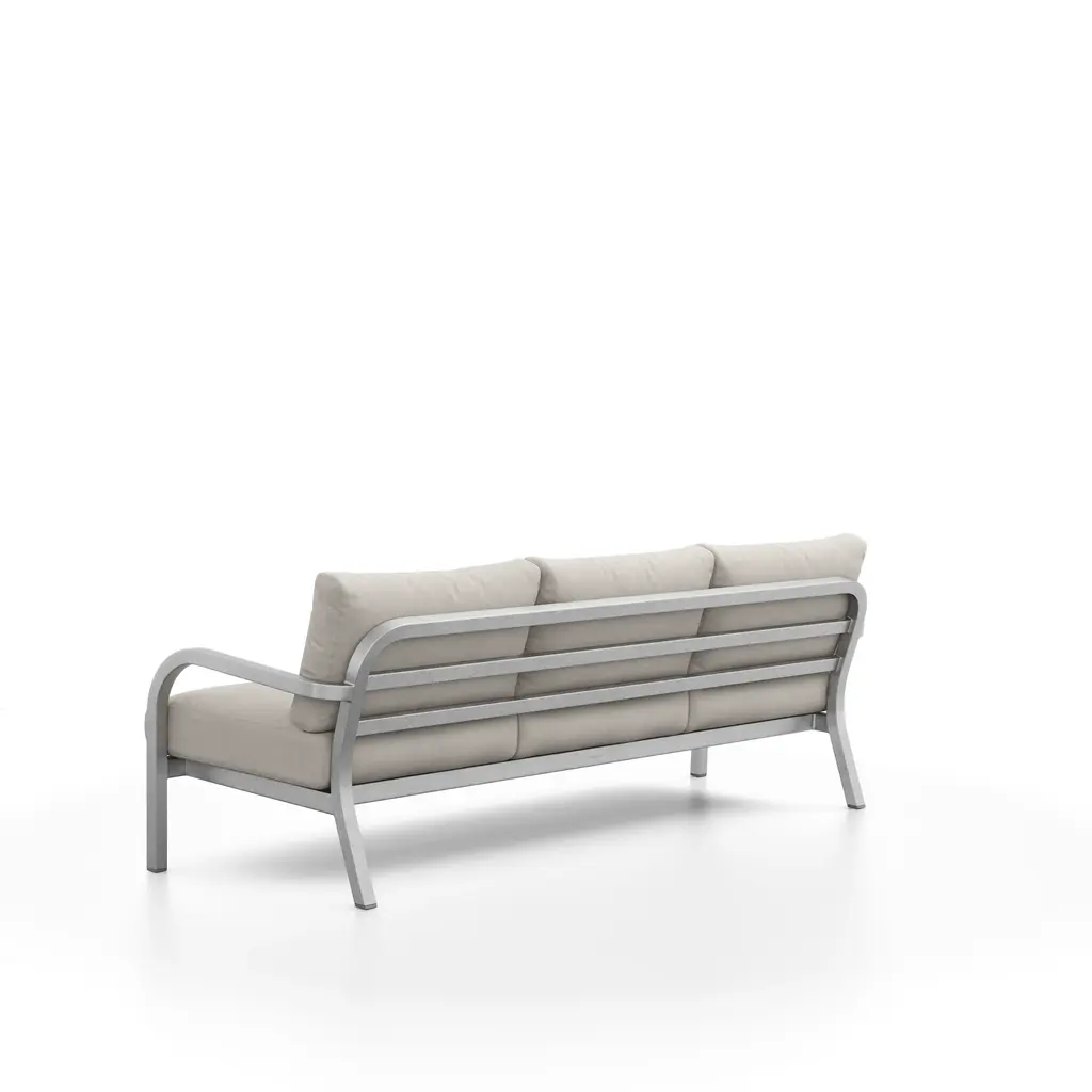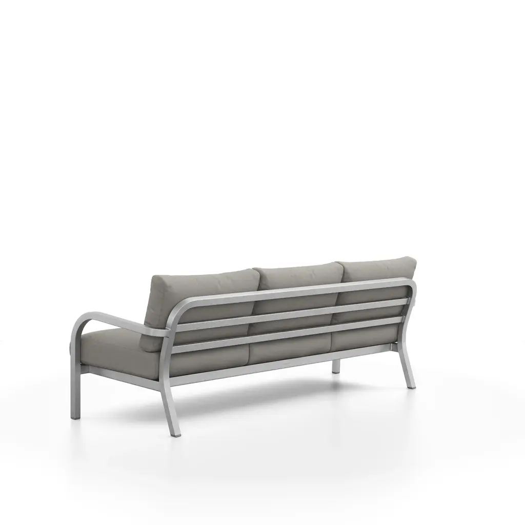 Navy Lounge by Jasper Morrison, 2025 Re-design of Emeco's classic 1940s sofa series, first made for the US Navy. Lightweight, yet extremely durable, lounge chair for indoor and outdoor use, adaptable to a wide range of settings. The frame in recycled aluminum is handmade by Emeco's craftsmen in Hanover, Pennsylvania, following the same unique process of hand welding and heat treating used since 1944 that makes furniture so strong it comes with a lifetime warranty - in and out. The frame comes in Emeco's signature hand brushed finish with a clear powder coat, or in powder coat colors. Black and White Grey are standard options, Emeco's in-house range of colors also available at no up-charge, no MOQ. Contact us to place your order. Upholstery available in a range of leather, fabric and outdoor textiles. All cushions with Sunbrella Heritage cushion covers are outdoor approved. COM/COL also offered, subject to approval - please contact us to confirm suitability of custom textiles prior to order. Cushions are removable and attach to the frame with snaps and velcro for easy installation, replacement and removal, for storing when not in use. Optional arm caps in solid wood sold separately.