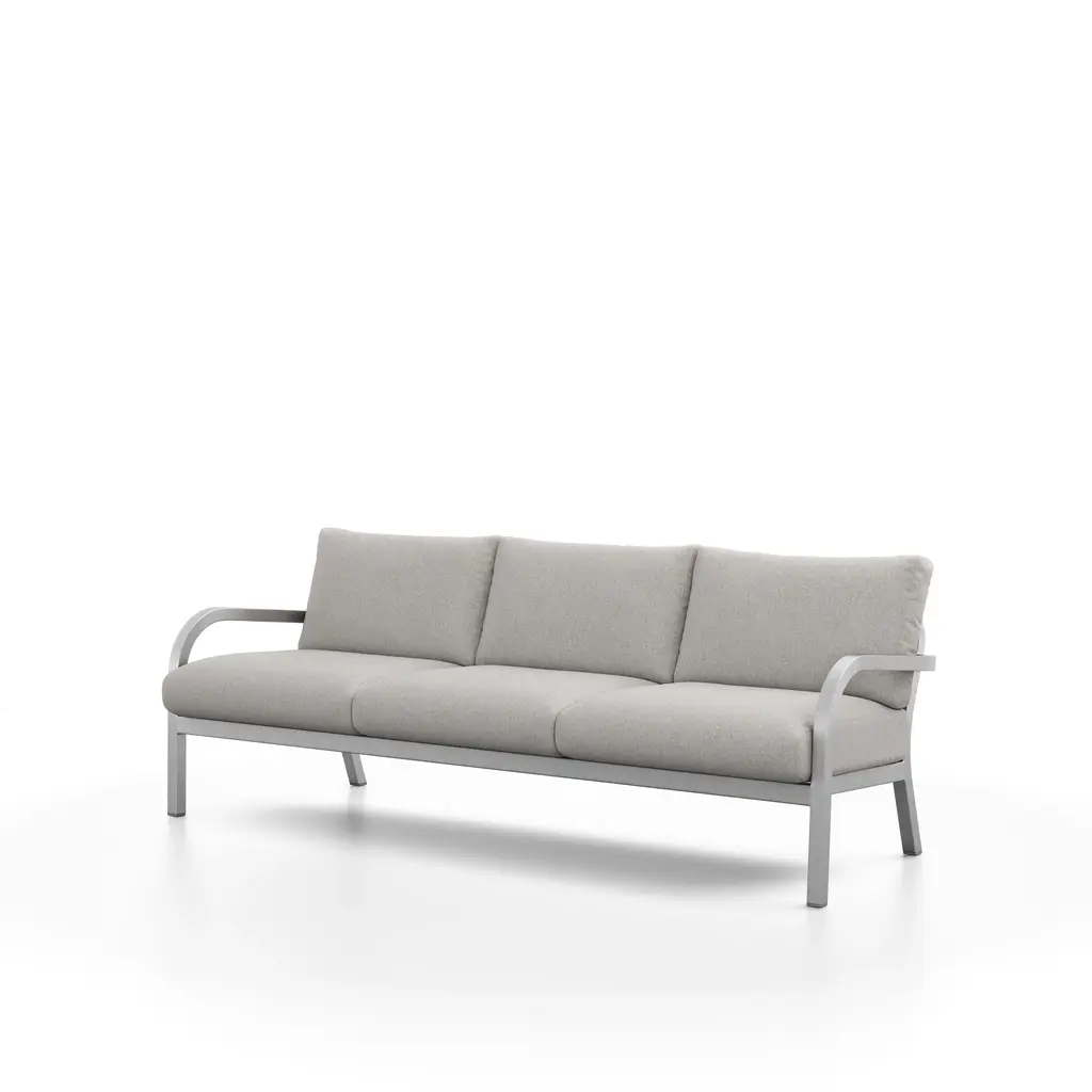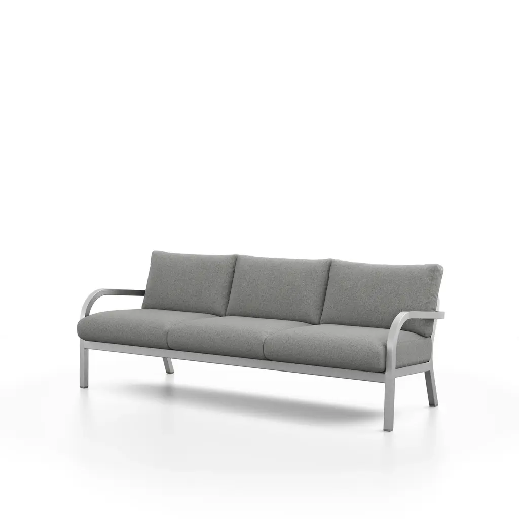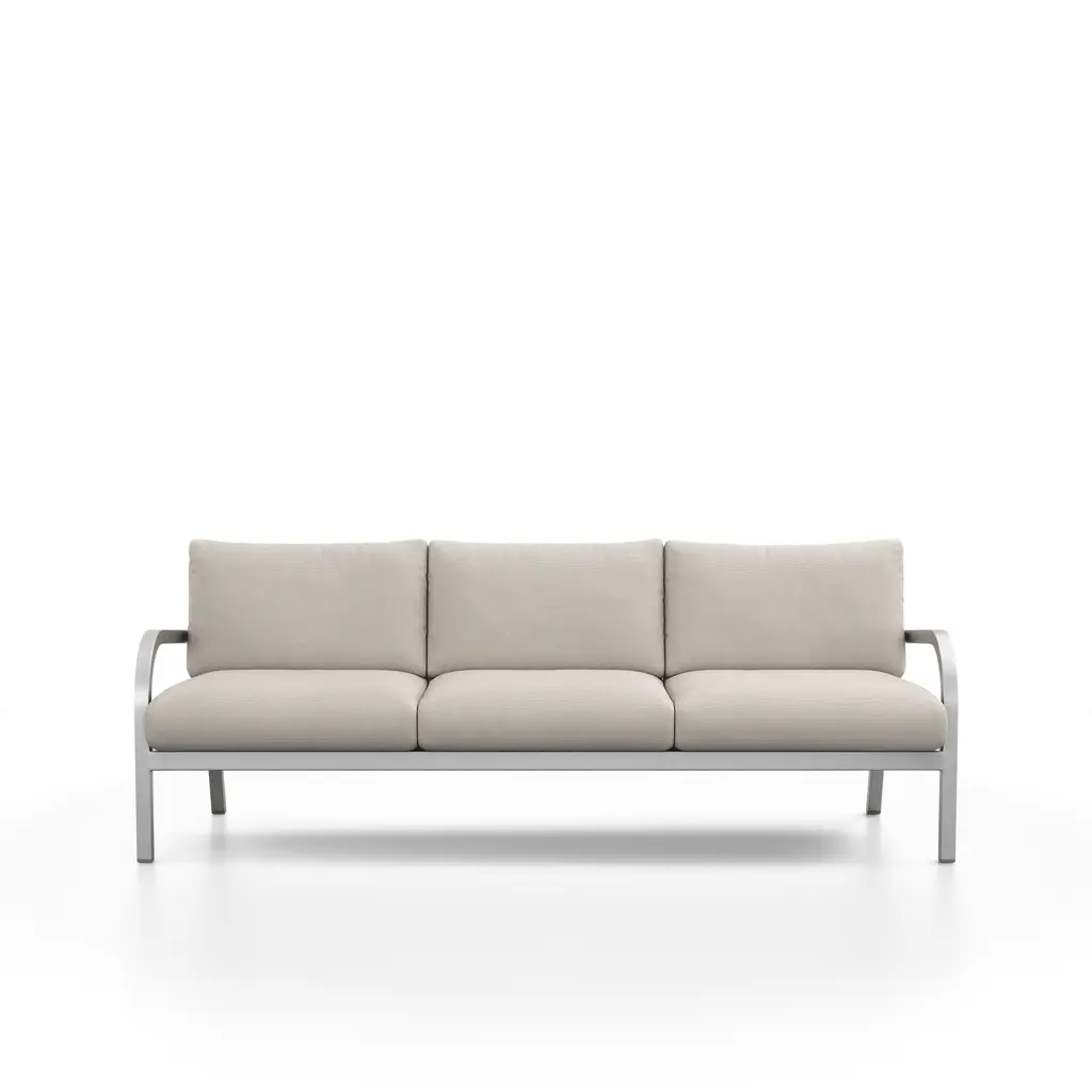 Navy Lounge by Jasper Morrison, 2025 Re-design of Emeco's classic 1940s sofa series, first made for the US Navy. Lightweight, yet extremely durable, lounge chair for indoor and outdoor use, adaptable to a wide range of settings. The frame in recycled aluminum is handmade by Emeco's craftsmen in Hanover, Pennsylvania, following the same unique process of hand welding and heat treating used since 1944 that makes furniture so strong it comes with a lifetime warranty - in and out. The frame comes in Emeco's signature hand brushed finish with a clear powder coat, or in powder coat colors. Black and White Grey are standard options, Emeco's in-house range of colors also available at no up-charge, no MOQ. Contact us to place your order. Upholstery available in a range of leather, fabric and outdoor textiles. All cushions with Sunbrella Heritage cushion covers are outdoor approved. COM/COL also offered, subject to approval - please contact us to confirm suitability of custom textiles prior to order. Cushions are removable and attach to the frame with snaps and velcro for easy installation, replacement and removal, for storing when not in use. Optional arm caps in solid wood sold separately.
