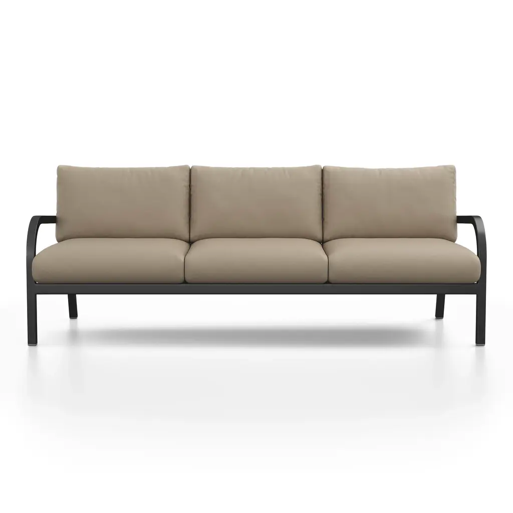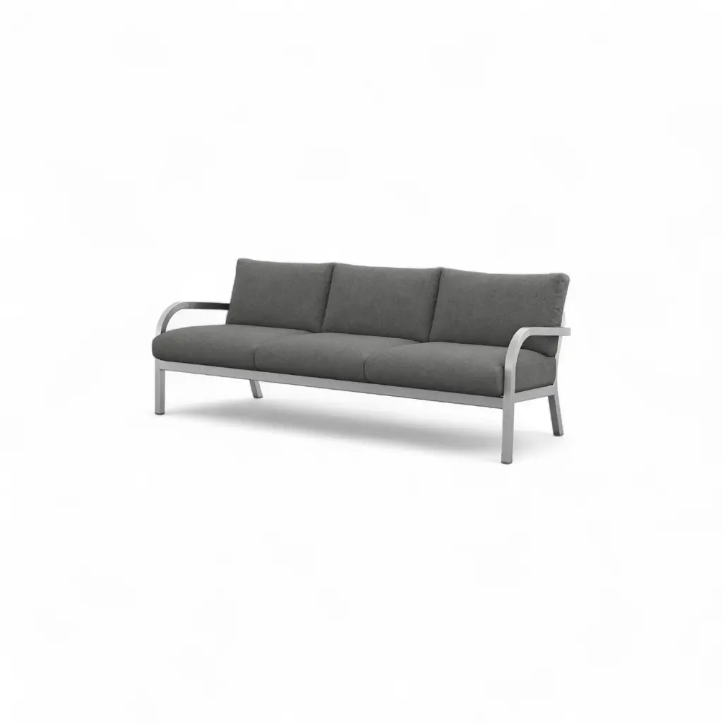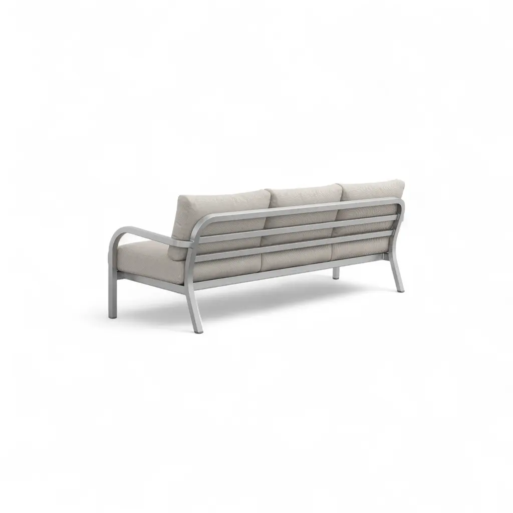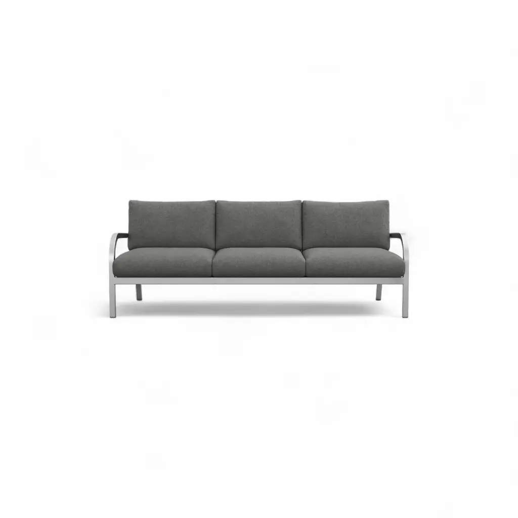 Will fingerprints stand out on brushed aluminum? Not really — the satin grain masks smudges and stands up to moisture anywhere you place it. Here, Morrison’s 2025 update salutes the 1940s original: each frame is TIG-welded from recycled aluminum, kiln-aged for strength, then hand-brushed before a clear powder coat locks in a soft sheen. Despite its airy look, the sofa meets the same 1,500-lb load standard once set for the U.S. Navy. Choose cushions in leather, wool, or outdoor fabric—or send your own material once we okay a swatch. Discreet snaps let you peel everything off for a sudden downpour or end-of-season storage. Park the sofa under a loft skylight, slide it onto a covered veranda, or wheel it poolside for weekend gatherings; the reflective frame echoes nearby colors without ever rusting, and the lifetime warranty follows wherever it goes.