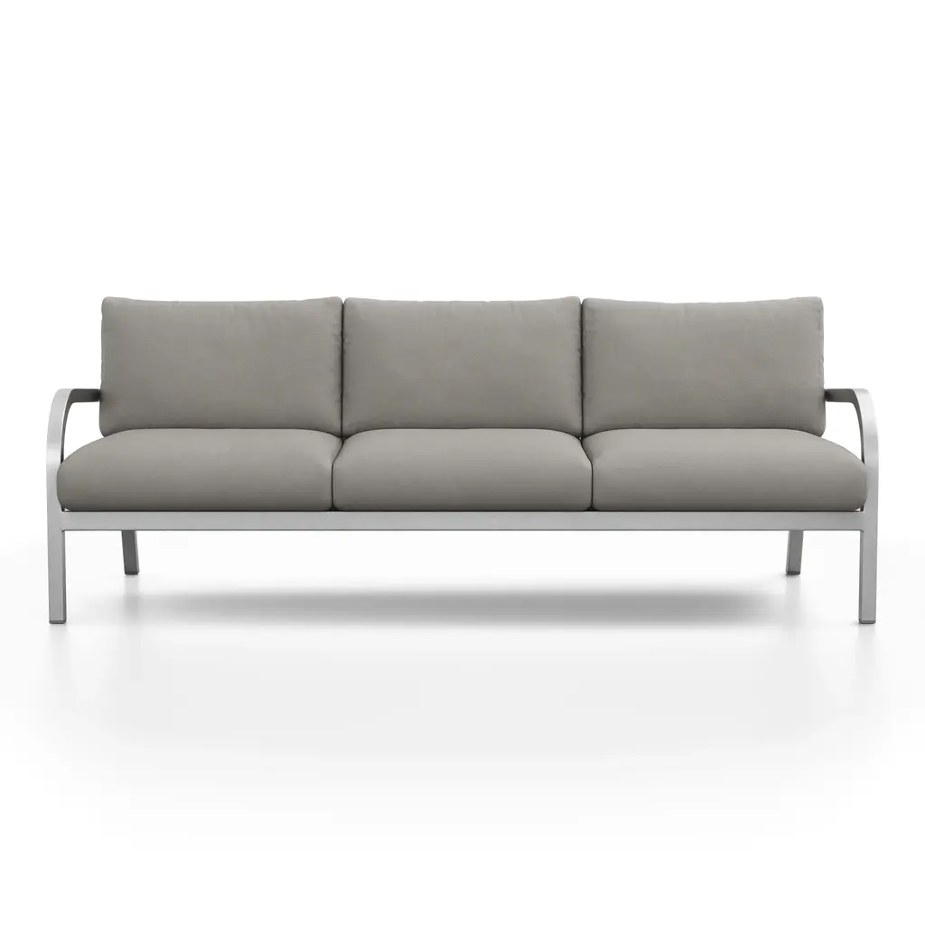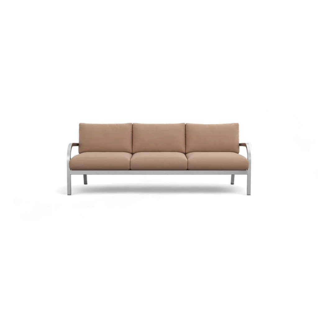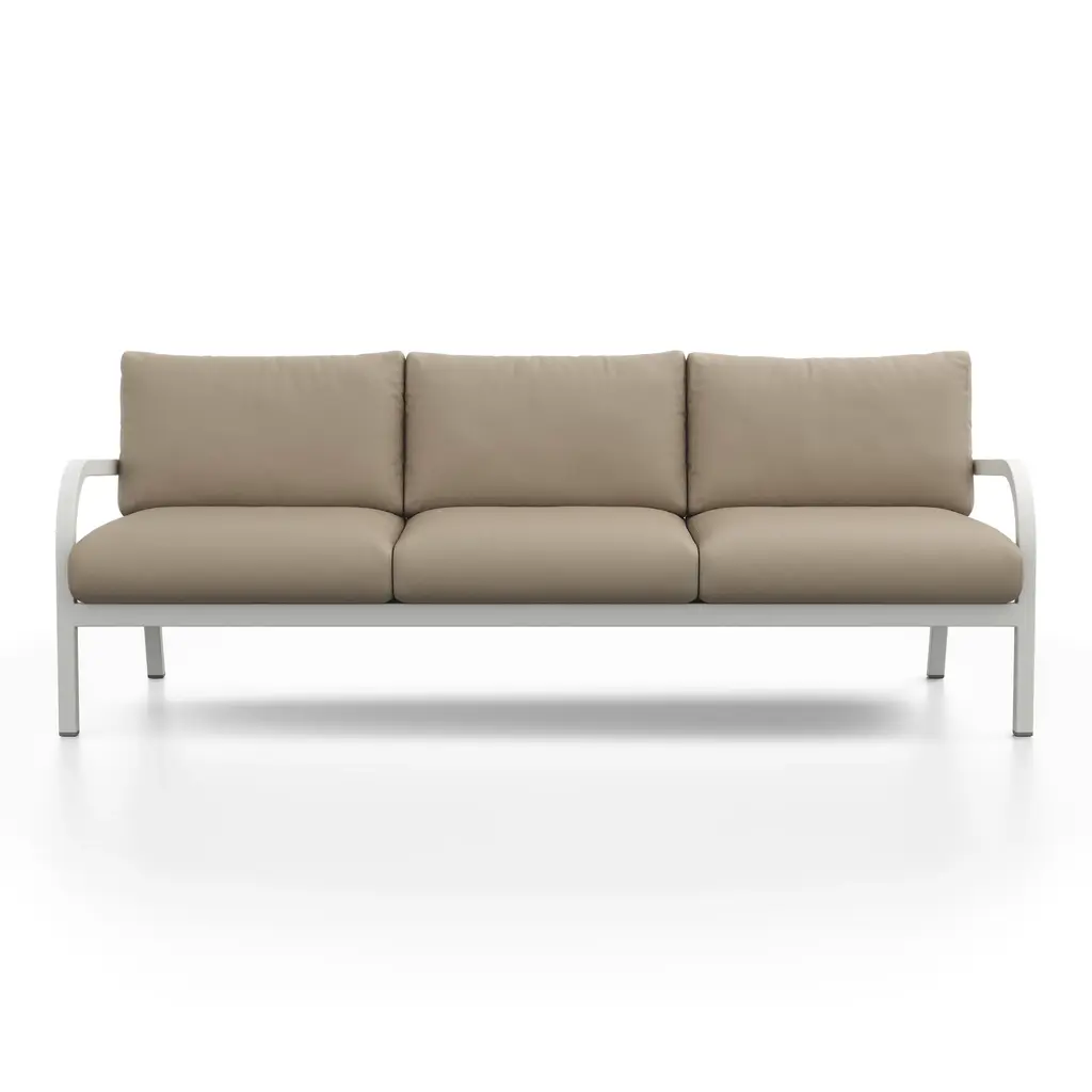 A modern reimagining of Emeco’s iconic 1940s sofa series—originally designed for the U.S. Navy—the Navy Outdoor 3-Seater Sofa delivers the perfect balance of lightness, strength, and timeless style. Its recycled aluminum frame is handcrafted in Hanover, Pennsylvania, using the same meticulous welding and heat-treating process perfected in 1944, resulting in furniture so durable it carries a lifetime warranty, indoors or out. Available in Emeco’s signature hand-brushed finish or a range of powder coat colors, the frame pairs with cushions upholstered in leather, fabric, or outdoor-ready textiles, including Sunbrella® Heritage for all-weather performance. Cushions are removable and secured with snaps and Velcro® for effortless installation, replacement, and seasonal storage. Highlights