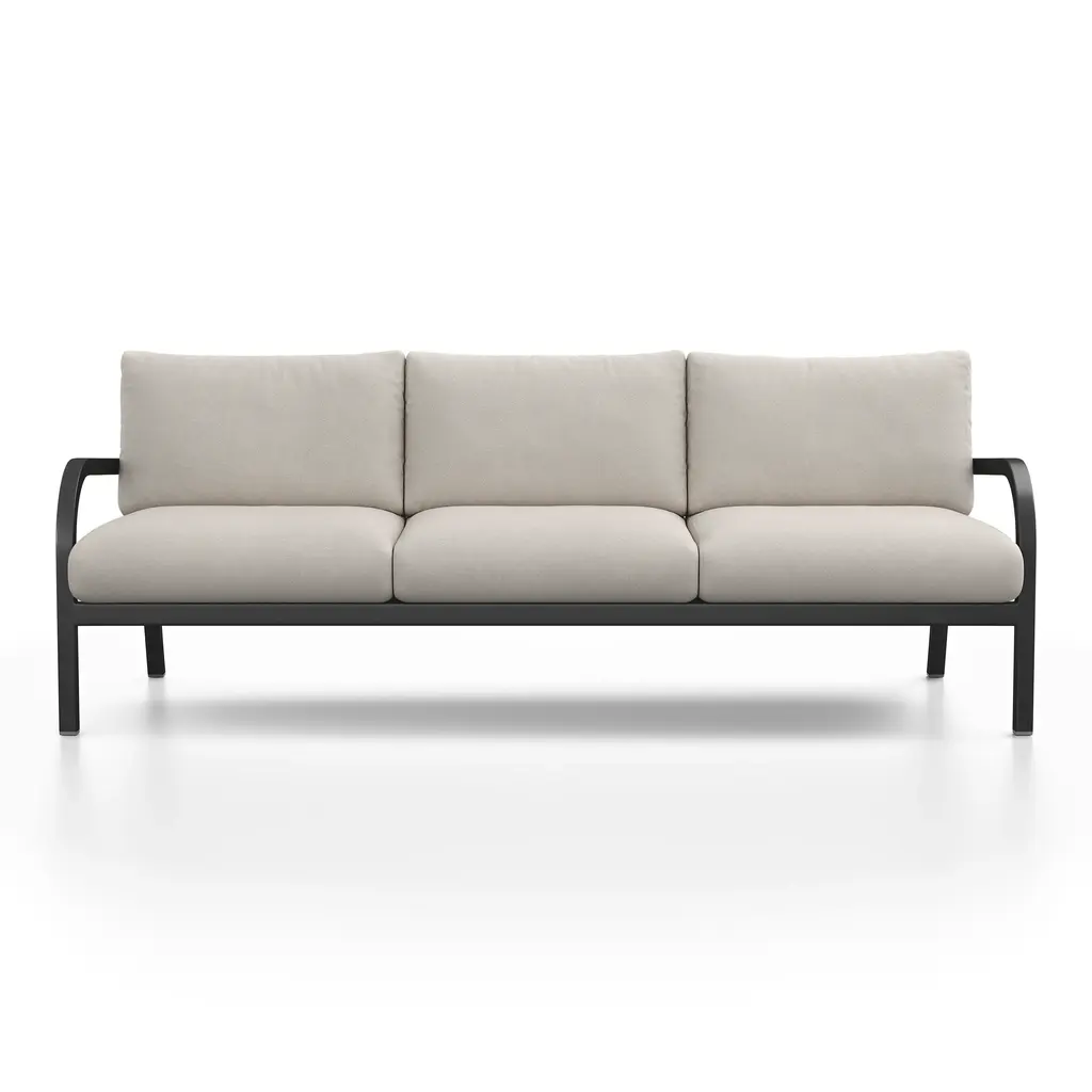 A modern reimagining of Emeco’s iconic 1940s sofa series—originally designed for the U.S. Navy—the Navy Outdoor 3-Seater Sofa delivers the perfect balance of lightness, strength, and timeless style. Its recycled aluminum frame is handcrafted in Hanover, Pennsylvania, using the same meticulous welding and heat-treating process perfected in 1944, resulting in furniture so durable it carries a lifetime warranty, indoors or out. Available in Emeco’s signature hand-brushed finish or a range of powder coat colors, the frame pairs with cushions upholstered in leather, fabric, or outdoor-ready textiles, including Sunbrella® Heritage for all-weather performance. Cushions are removable and secured with snaps and Velcro® for effortless installation, replacement, and seasonal storage. Highlights