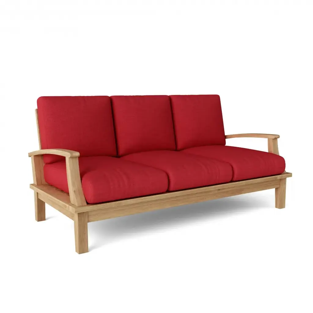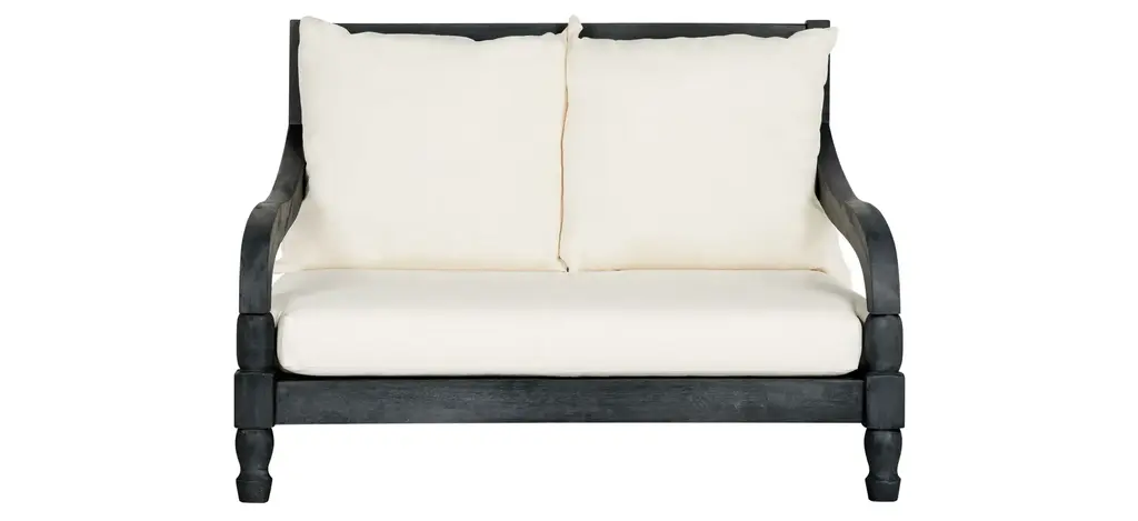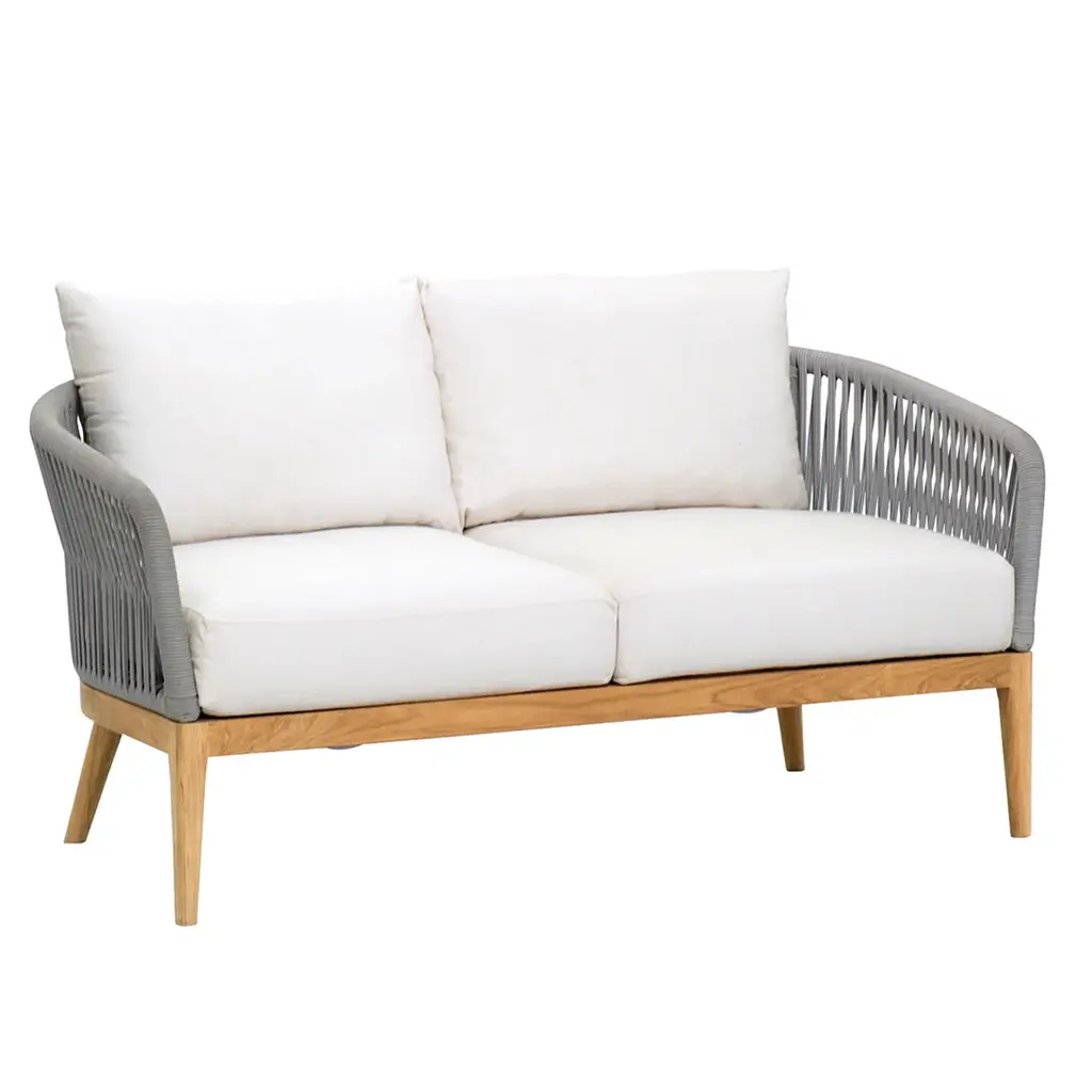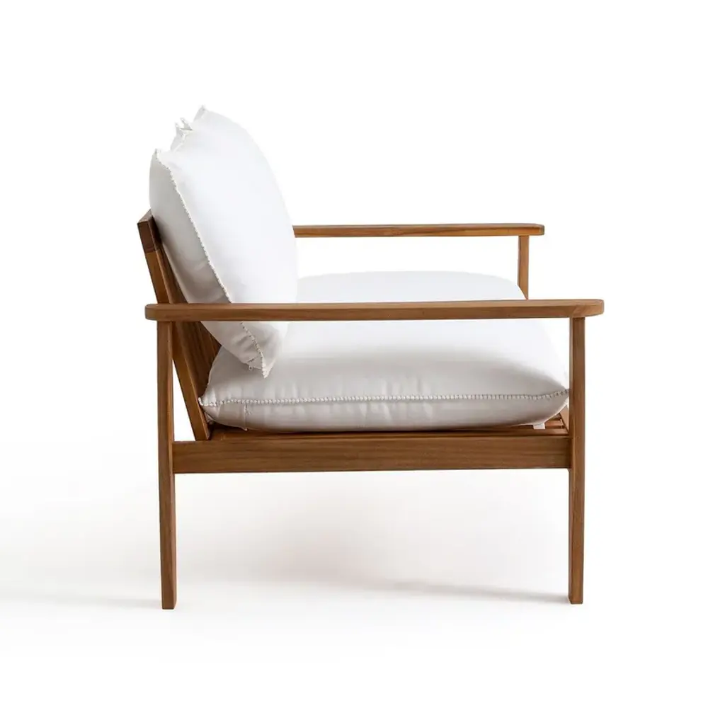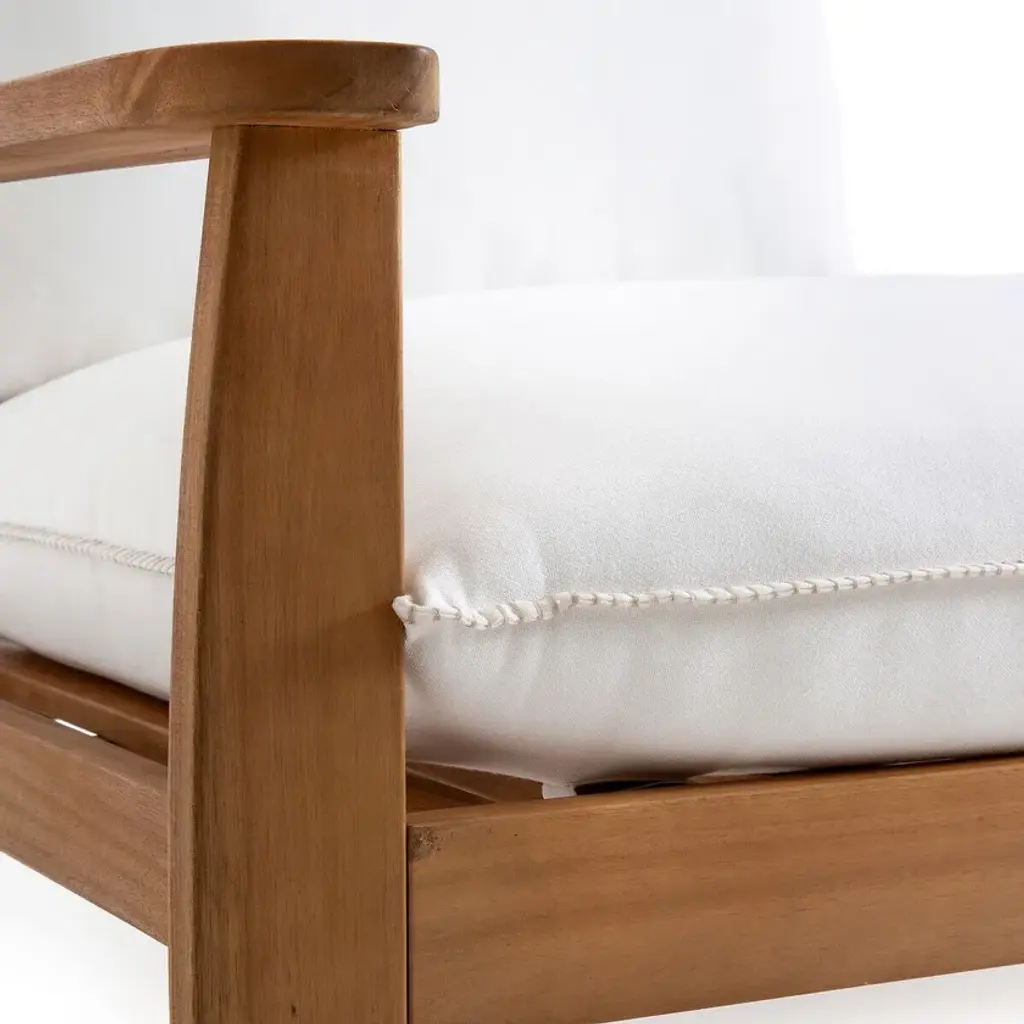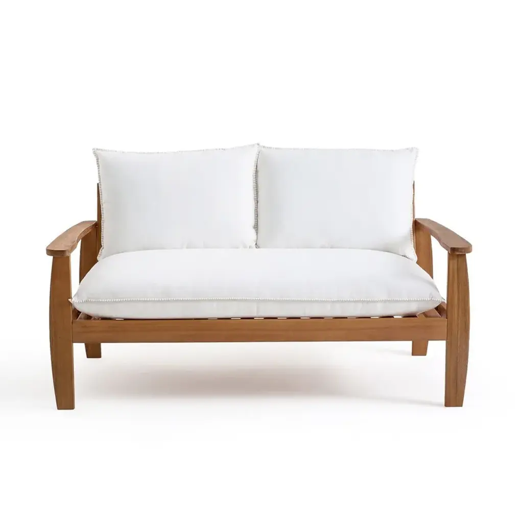 The Nellia 2-seater garden sofa invites to lazing about and conviviality. With its slightly sloping backrest and wide 'Adirondack' style armrests, this garden seat offers particularly comfortable seating. Its outdoor-treated cushions can be left out even in bad weather.Made of oiled acacia1 large seat cushion, 2 back cushionsCushions upholstered with 100% polyester foam and polyester fibre fillingRemovable cushions, dry cleaning