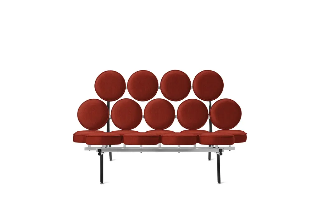 The Nelson Marshmallow Sofa (1956) was inspired by inventor Irving Harper, who approached George Nelson with a proposed machine that could produce low-cost cushions. Since each cushion would have a maximum diameter of 12 inches, Nelson and Harper perched 18 of them atop a steel frame and back to see how they'd look. The machine didn't pan out, but the sofa's design was so compelling that Herman Miller produced it anyway. Available in many fabrics and leathers, this is the original Marshmallow Sofa.