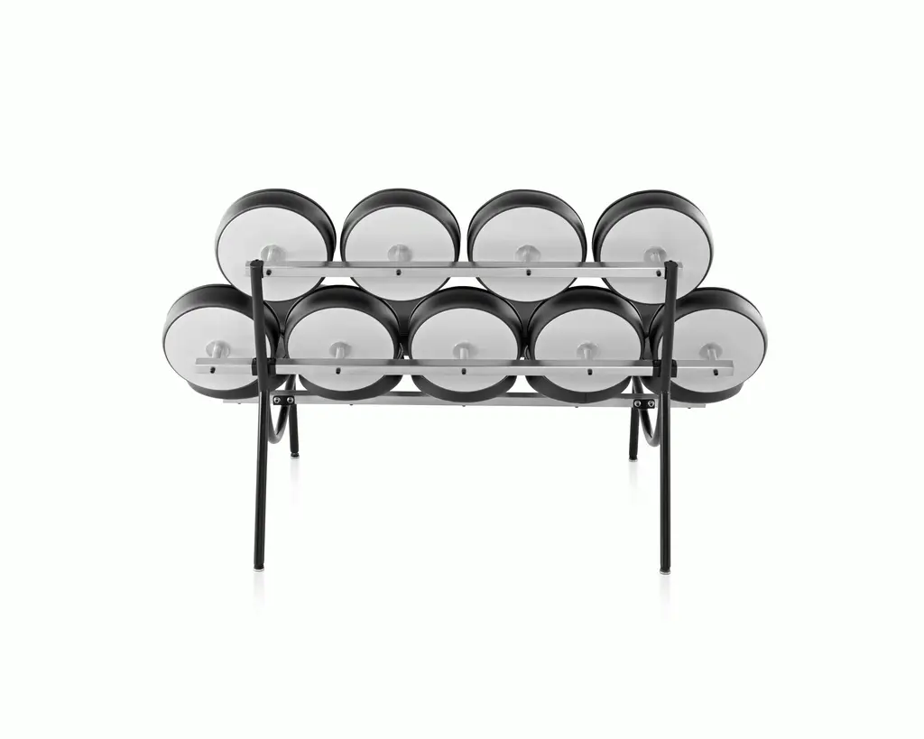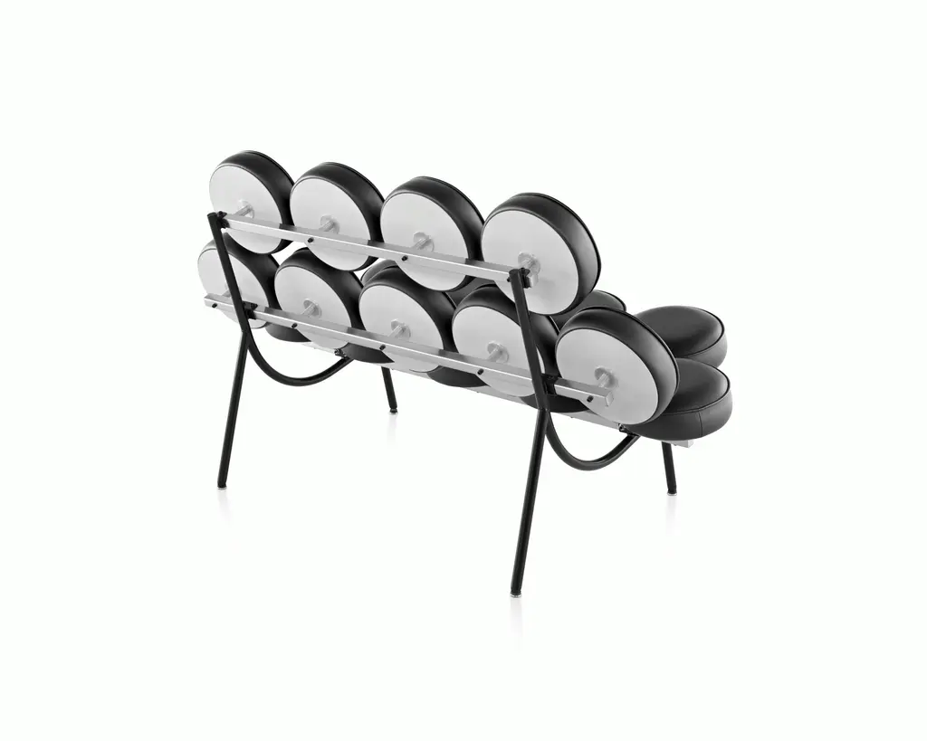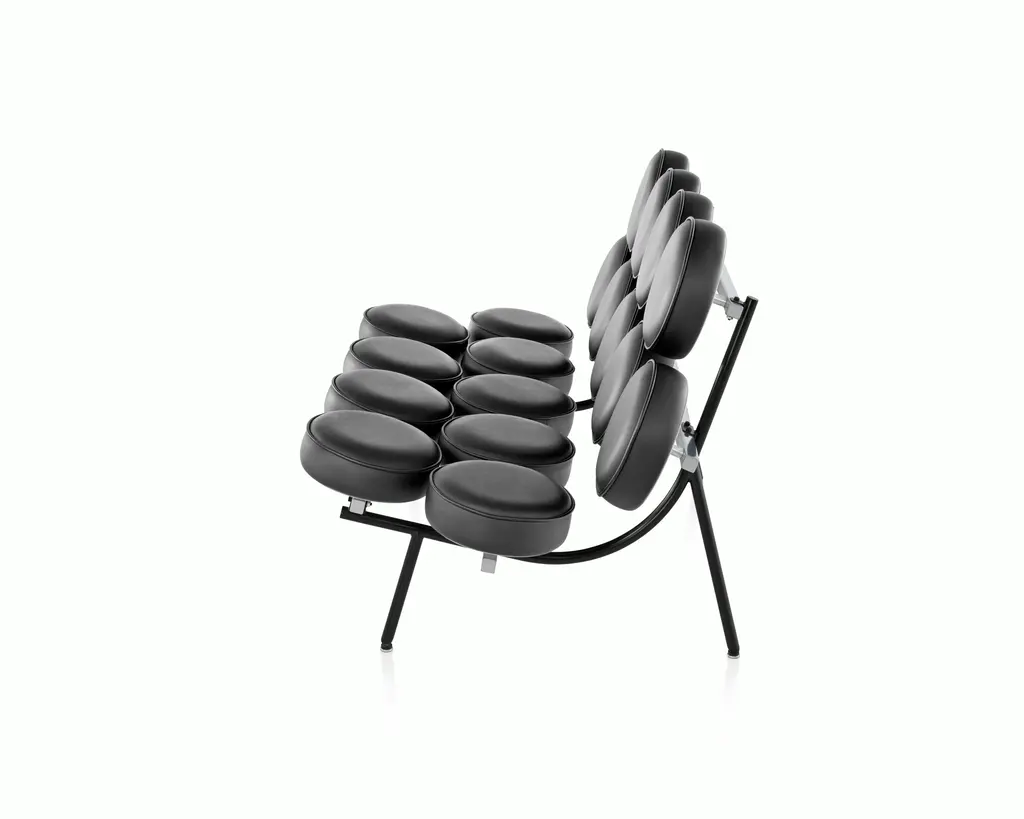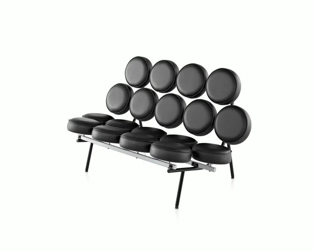 The Nelson Marshmallow Sofa (1956) was inspired by inventor Irving Harper, who approached George Nelson with a proposed machine that could produce low-cost cushions. Since each cushion would have a maximum diameter of 12 inches, Nelson and Harper perched 18 of them atop a steel frame and back to see how they'd look. The machine didn't pan out, but the sofa's design was so compelling that Herman Miller produced it anyway. Available in many fabrics and leathers, this is the original Marshmallow Sofa.