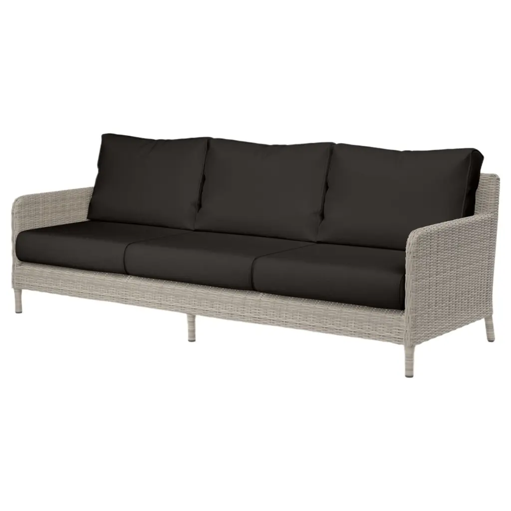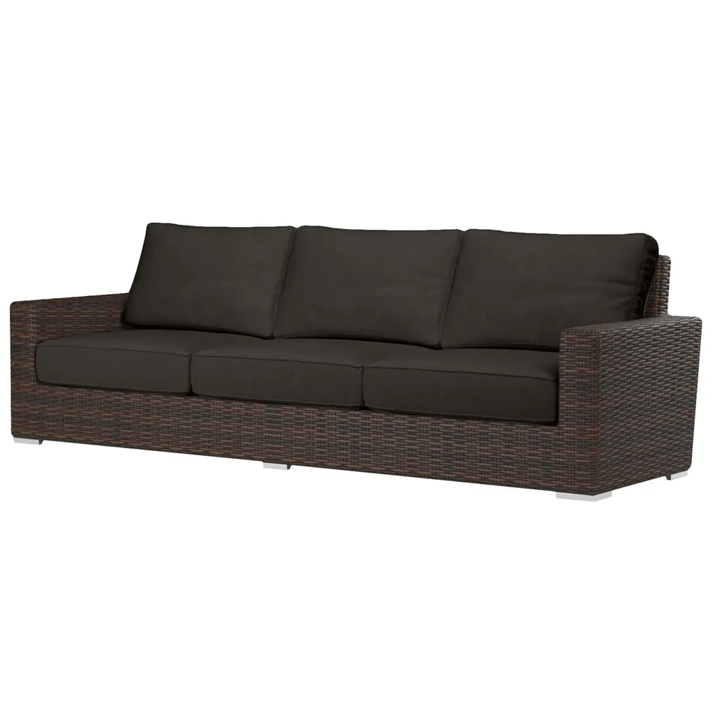 The Neptune Sofa embodies casual sophistication, with transitional lines wrapped in beautiful resin wicker. Outstanding comfort is provided with plush, fast-drying cushions and generous seating proportions. It features a fully welded powder-coated aluminum frame and weather-resistant, high-resiliency density cushions. The sofa is constructed with commercial quality and incorporates Progressive Springing System technology. Neptune coordinates well with other pieces from the collection, offering a cohesive and stylish look.