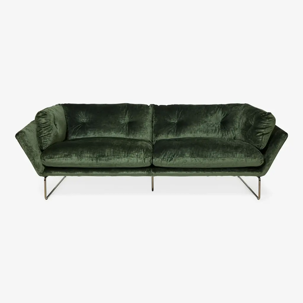 Where retro elegance meets forward-thinking design, the New York Suite Sofa by Saba Italia embodies the perfect balance of sculptural form and everyday comfort. Designed by Sergio Bicego, this contemporary masterpiece captures the brand’s metropolitan spirit while celebrating timeless Italian craftsmanship. Handmade in Italy, the New York Suite Sofa features a distinctive hexagonal frame that rests gracefully on slender legs, creating a sense of architectural lightness. Its quilted cushions recall a touch of retro glamour and nostalgic charm, while the overall silhouette remains boldly modern, reflecting Saba Italia’s talent for uniting past and future design sensibilities. Crafted with a removable velvet slipcover, the sofa offers both refinement and practicality, allowing for effortless maintenance and easy updates over time. The generous, low profile invites relaxation, while its tailored geometry ensures balance, comfort, and proportion. Available in two lengths, 91 inches and 102 inches wide, the New York Suite Sofa offers versatile scale for both residential and contract settings. Shown in vibrant Italian velvets, it adds depth, texture, and character to any interior. Soft yet structured, the New York Suite Sofa pairs beautifully with the New York Suite Bench to create a cohesive and inviting composition. The collection captures what Saba Italia is known for—expressive design, exceptional comfort, and enduring elegance. An ABC customer favorite, the New York Suite Sofa is a statement piece for those who value both design integrity and lived-in luxury. It bridges nostalgia and innovation, embodying the essence of modern Italian artistry.