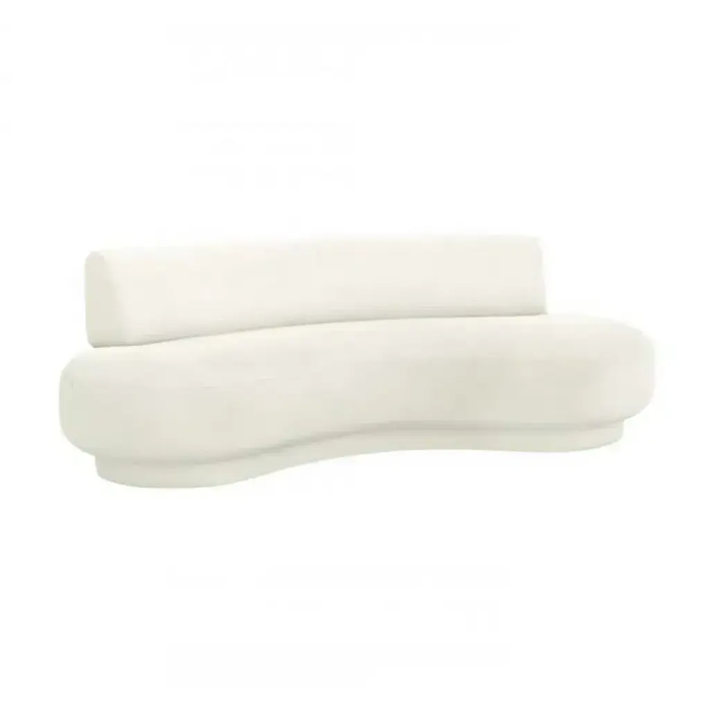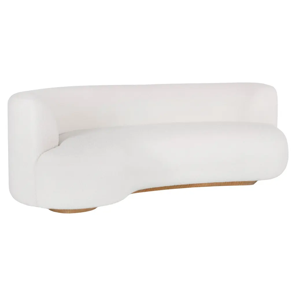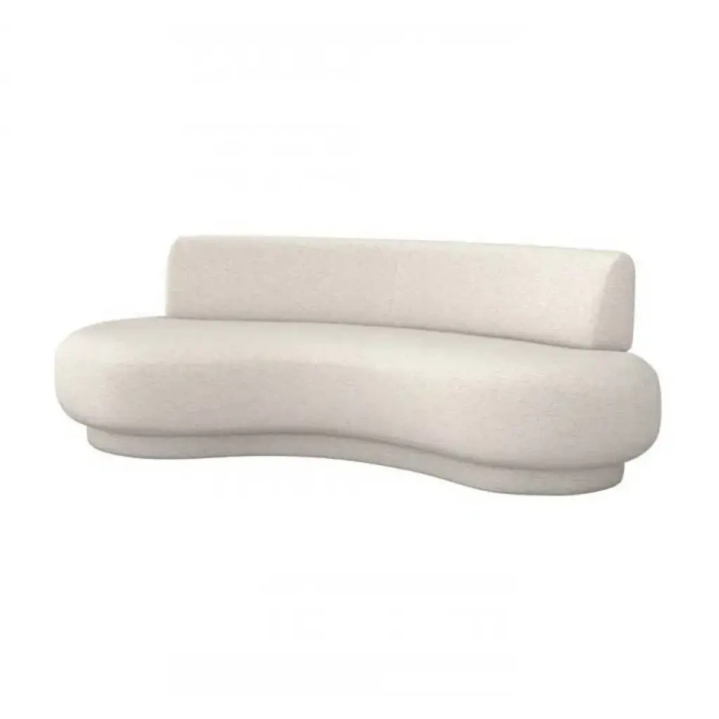 The Nido Sofa in White is a modern and sophisticated seating piece designed for both comfort and style. Upholstered in luxurious white bouclé fabric, it exudes elegance with its soft, textured surface. The sofa features a smooth, curved silhouette with an inviting, organic shape that enhances any contemporary living space. Its plush cushioning ensures a cozy seating experience, while the low-profile design adds a chic, minimalist touch. The gently sloped backrest and rounded armrests seamlessly blend into the overall structure, creating a harmonious aesthetic. Perfect for lounging or entertaining, the Nido Sofa brings warmth and refinement to any interior. Also available in Camel Velvet.