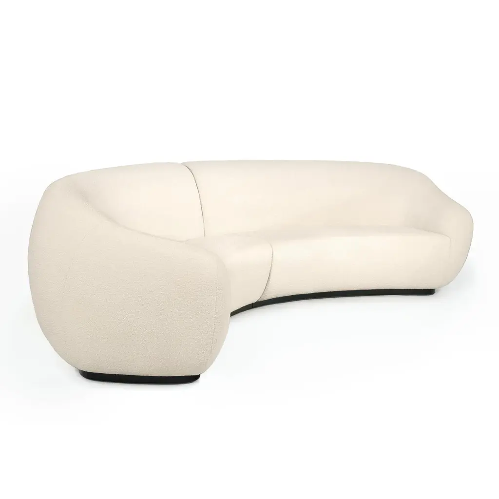The Niemeyer II round sofa is named after the Brazilian Architect Oscar Niemeyer whose Architecture was spread like sculptural poetry in the History of humankind.The rounded lines of the sofa are influenced by the remarkable ‘Casa das Canoas’ designed by Niemeyer in 1951. The flat roof offers its flowing forms to the round seat. The backward movement of the curve that frames a large granite boulder is recreated by the location of the seams in a meticulous upholstered work that flows all around the arms of the sofa.The sophisticated round sofa is a statement piece with serene beauty designed for bold interior living spaces. Product detailsUpholstery: the price shown refers to the piece without any fabric (the client must provide it). If you're looking for the price of the piece with the fabric shown on the image, please search the product name without the "COM".Base: dark oak finished in matte varnish.COM: 20m 787.40in. (Standard width 140cm 55in.)Product optionsUpholstery: Client's Own Material.Base: other woods or any Ral Classic color finished in matte, half gloss or high gloss varnish.Weight120Kg 264.6 lbsMade to order. Custom sizes and other finishes are available under request.Designed by Joana Santos Barbosa, 2021. Handmade in Portugal.