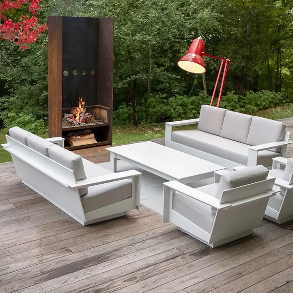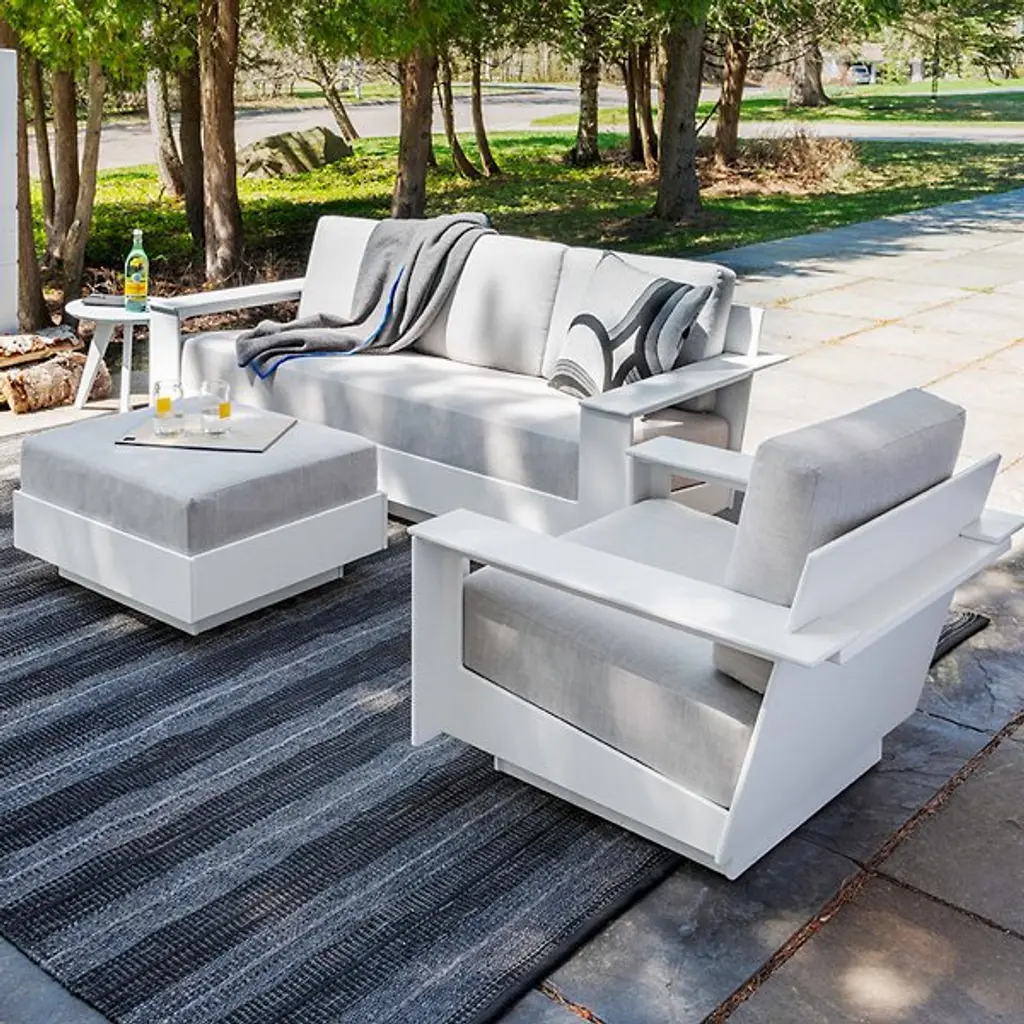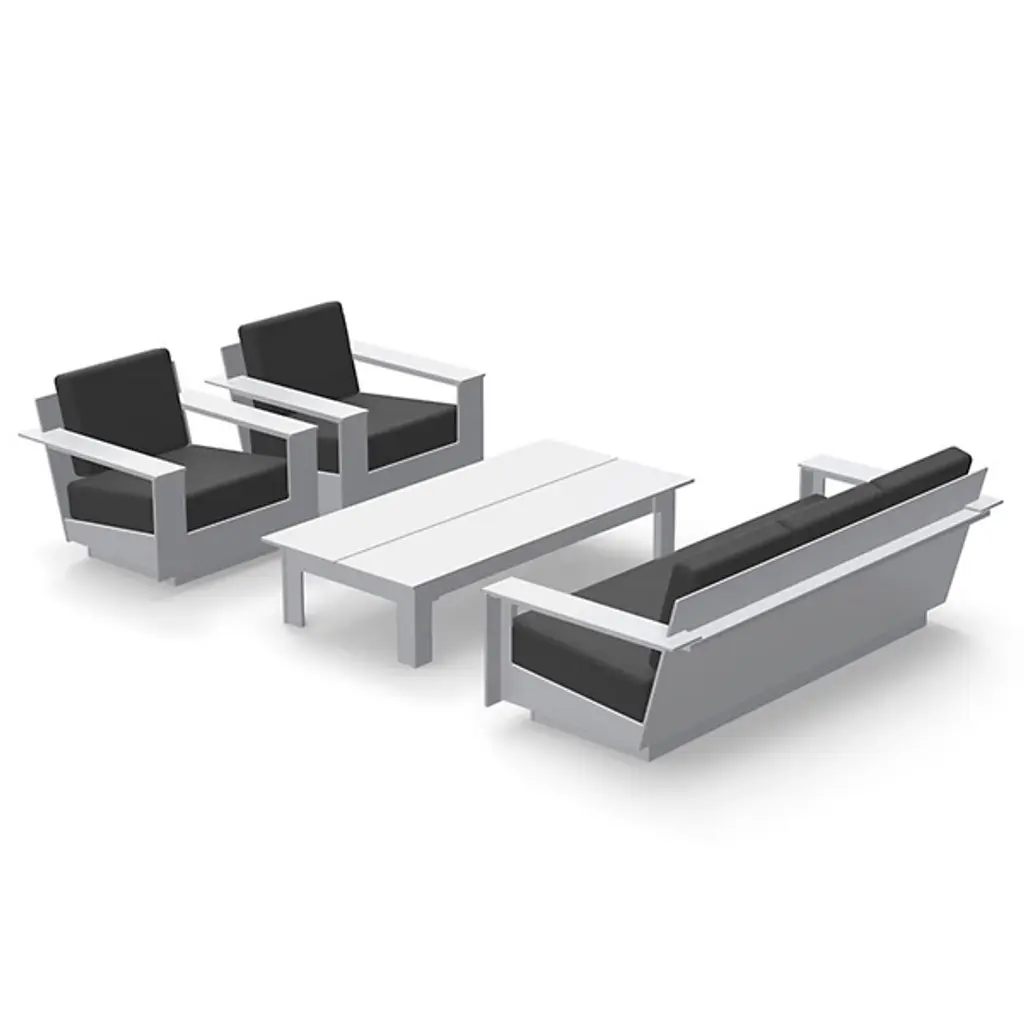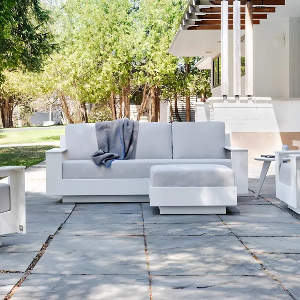 Bring the feeling of lakeside relaxation to your modern exteriors with the Nisswa Outdoor Sofa by Loll Designs. Named after the popular lake area in northern-central Minnesota, this sleek sofa is first defined by its highly sustainable and environmentally-conscious composition. Its modular frame is made of recycled milk jugs and non-recycled HDPE, with wide arms and an open design offering a clean and modern look. Durable Sunbrella fabric upholstery protects its cushions, offering a lasting, fade-resistant, and weather-repelling seat.