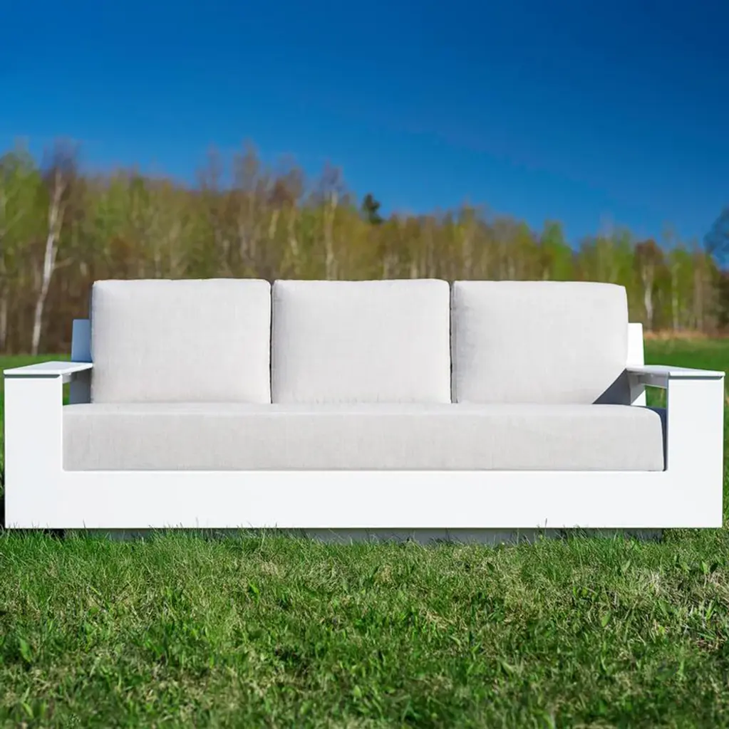 Sky blue lakes and hot summer nights, that’s what inspired a team of Minnesota furniture designers to create the Nisswa collection of outdoor furniture for Loll Designs. The Nisswa sofa works well in any space from casual to upscale, and makes a great addition to any outdoor space. The eco-friendly frames are made from recycled milk jugs – 672 to be exact. Complimenting their durable, sturdy frames, Sunbrella cushions top this sofa to provide sun and weather protection all year round.Highlights UV INFORMATION: RICHLITE: LOW-IMPACT MANUFACTURING:
