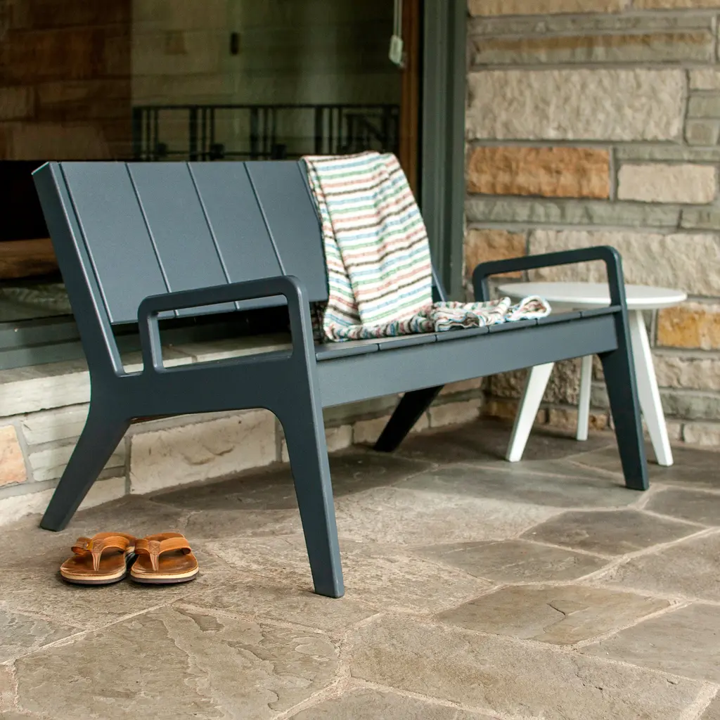 Designed by Studio Murmur for Loll Designs, this modern outdoor sofa is crafted in the U.S.A. from 100% recycled plastic sourced from milk jugs. The star of Loll’s No. 9 Collection, this outdoor sofa boasts a slightly taller silhouette and pleasant recline with well-placed arms, making it easy to get out after an afternoon of relaxation. UV-resistant and available in a wide range of colors, this outdoor sofa is ready to stand up to the unexpected elements all season long while bringing a pop of color to your favorite alfresco areas. Highlights