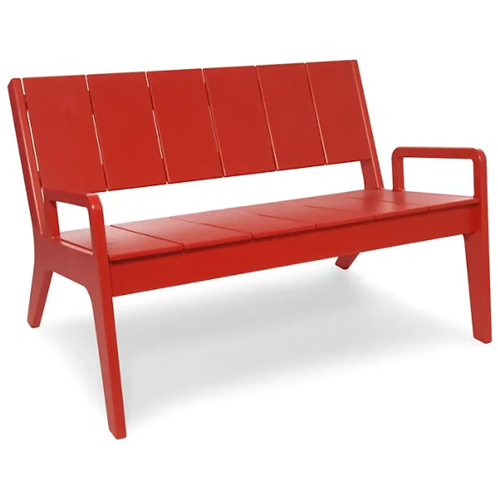 Designed by Studio Murmur for Loll Designs, this modern outdoor sofa is crafted in the U.S.A. from 100% recycled plastic sourced from milk jugs. The star of Loll’s No. 9 Collection, this outdoor sofa boasts a slightly taller silhouette and pleasant recline with well-placed arms, making it easy to get out after an afternoon of relaxation. UV-resistant and available in a wide range of colors, this outdoor sofa is ready to stand up to the unexpected elements all season long while bringing a pop of color to your favorite alfresco areas. Highlights