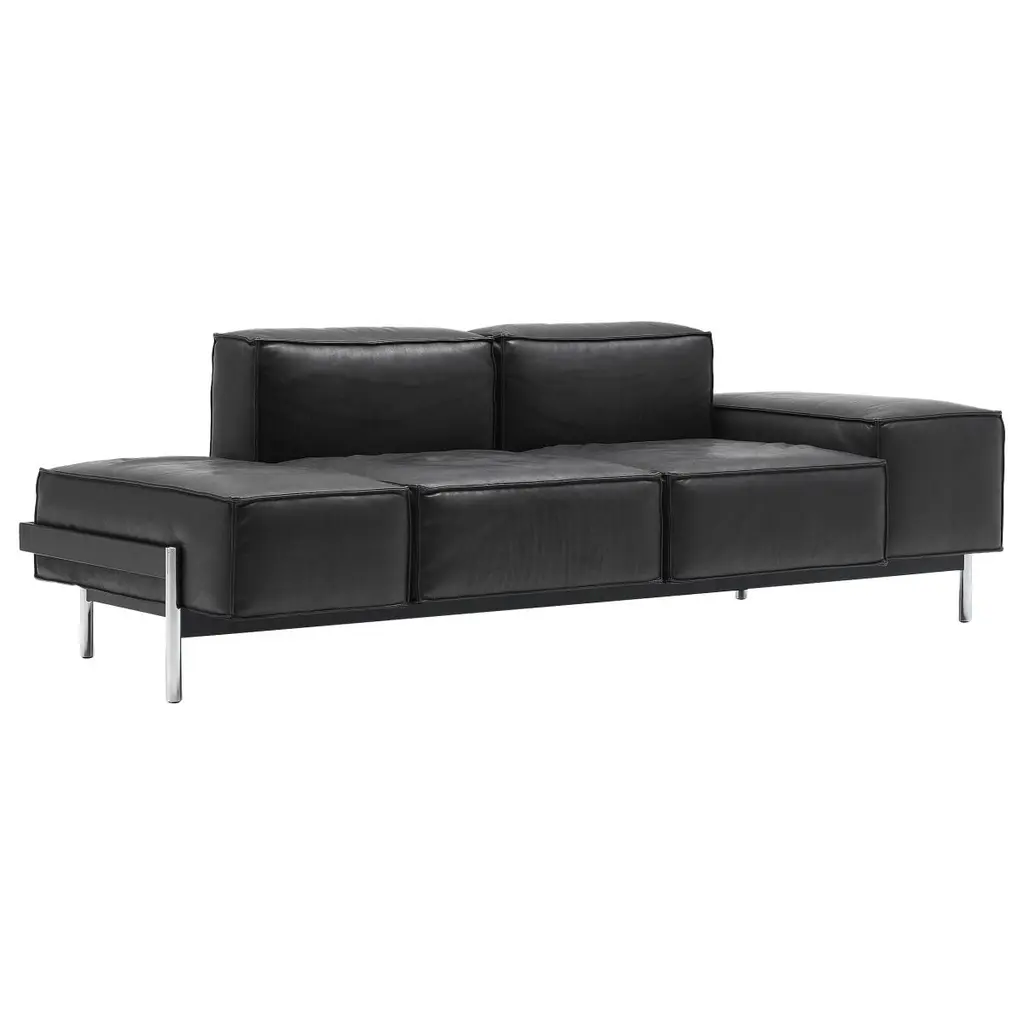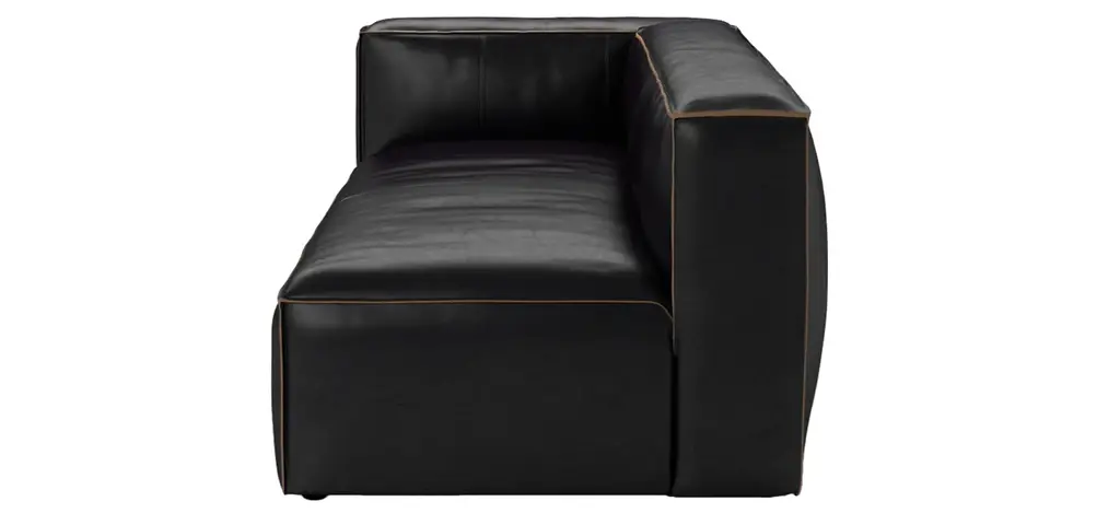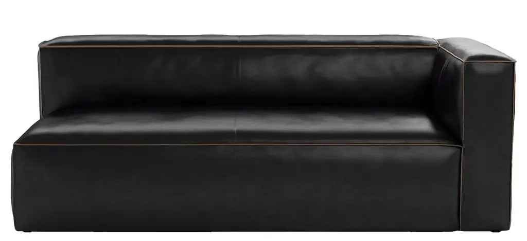 The Nolita left-arm-facing sofa is sleek, Italian styling with a distinctly casual appeal. Worn, top-grain leather with contrast stitching along the welt.