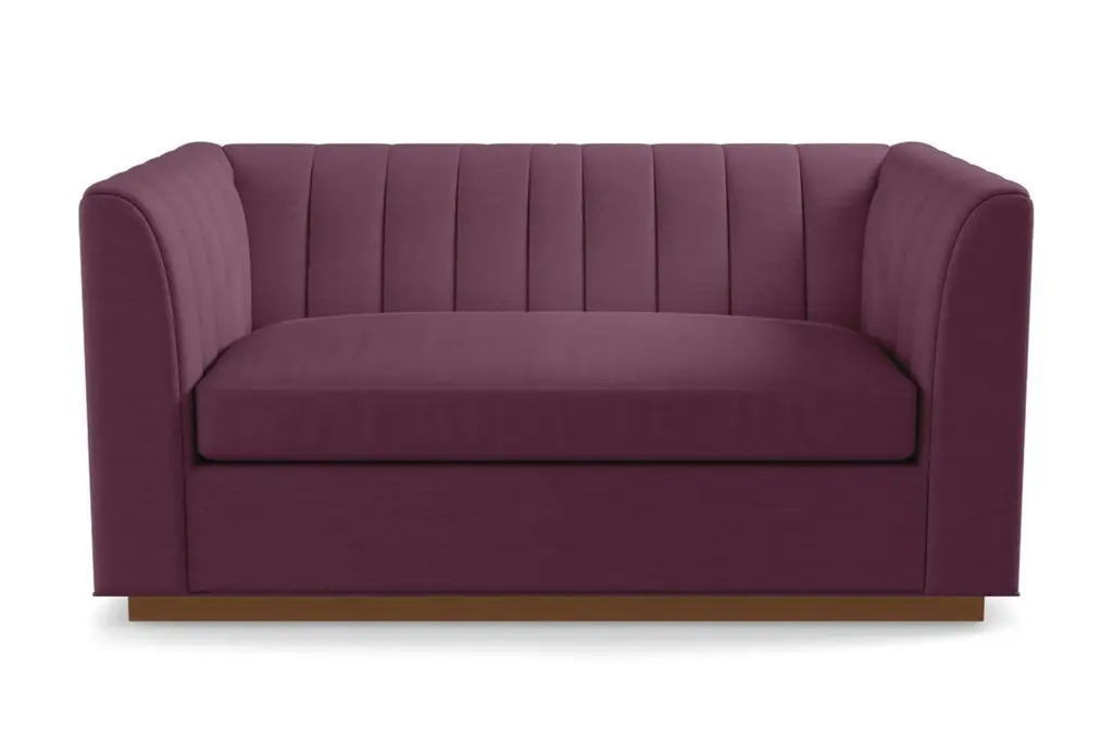 This sleek apartment-size sofa has a tight channel-tufted back that has an art deco flair with a modern silhouette. With high arms and a high back this chair envelopes you like an old school restaurant booth but the deep seat has you staying for dessert.