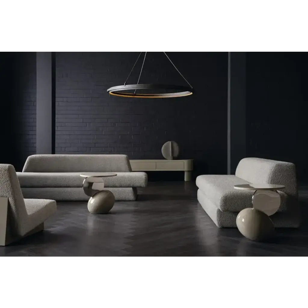 Geometry intersects with organic artistry for a look that is simultaneously timeless and modern. Clean lines and a linear form are softened by a luxurious boucle fabric, making the Nova sofa a standout on its own, and a harmonious complement to other silhouettes in our collection.