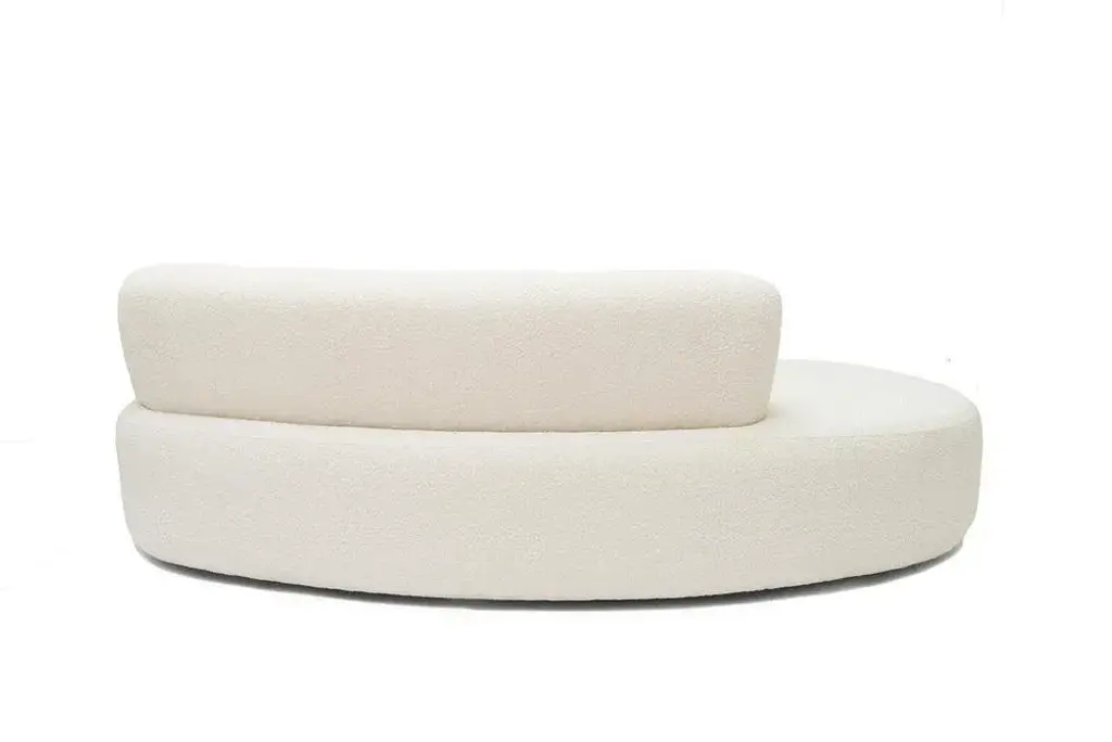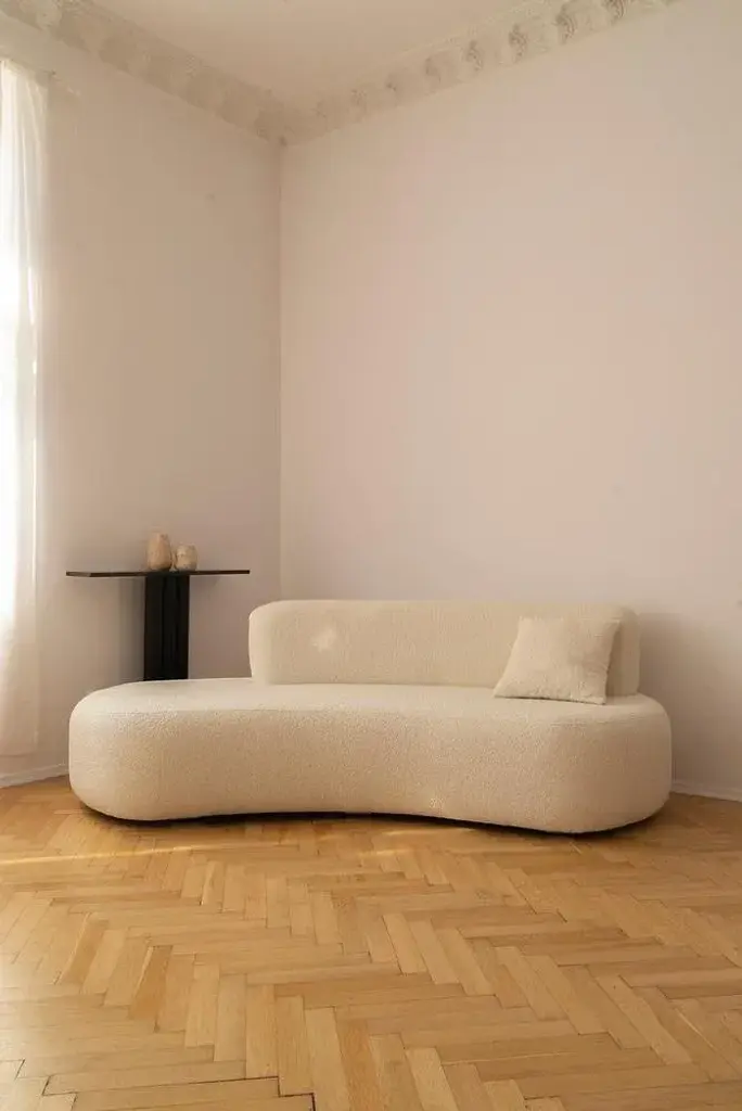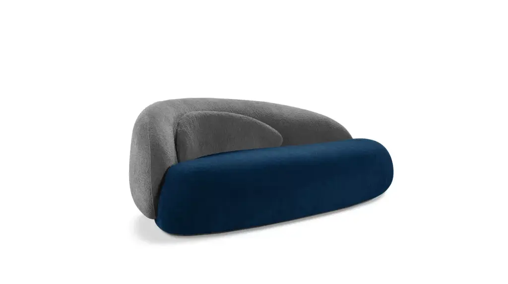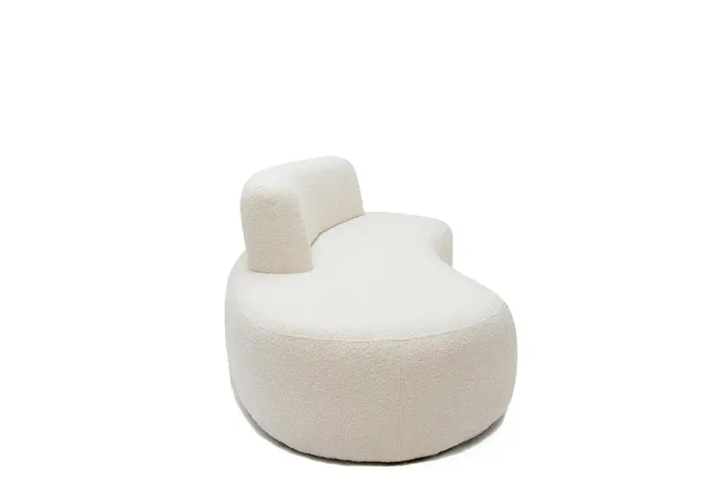 Object 050 sofa by ng design dimensions: d230 x w106 x h78 cm materials: boucle upholstery also available: all of objects available in different materials and colors on demand. Object050 is the embodiment of everything you expect from your sofa. The inviting, organic shape and premium fabric upholstery are a combination that's hard to resist. The sleek, asymmetrical shape will work well in both traditional and modern interiors. The retracted legs give the impression that the sofa floats above the surface, giving it lightness.