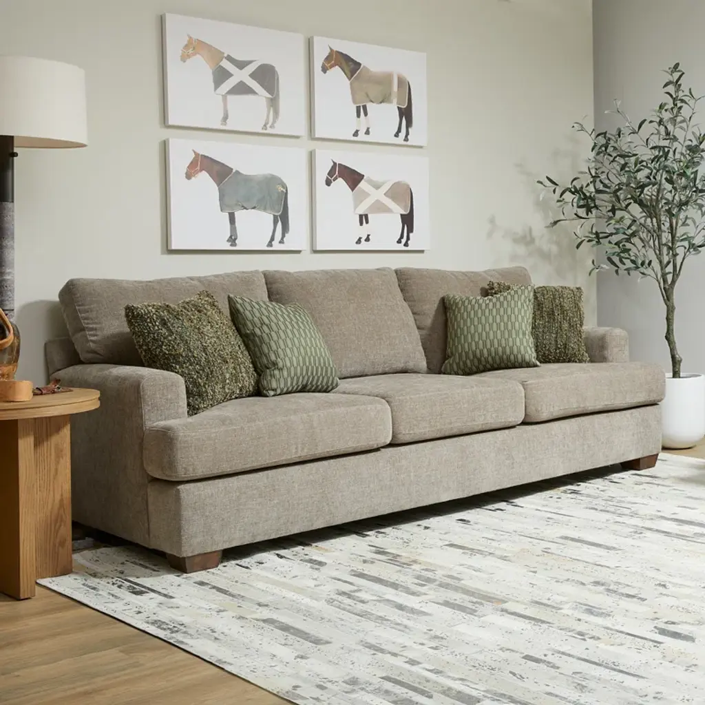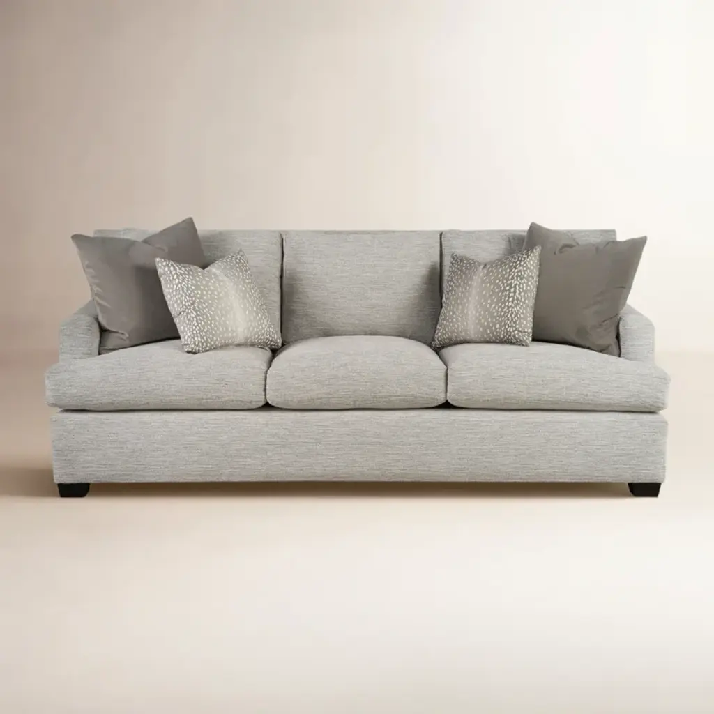 The Odyn sofa embodies classic charm and modern durability. It features clean lines along the T-cushion mailbox arms and box-border back cushions, while reversible Comfort Coil seat cushions deliver enduring comfort and resilience. Accompanied by four square accent pillows, this sofa brings a touch of elegance to any space, supported by a robust kiln-dried wood frame and chic square-tapered legs. The good life made better.™