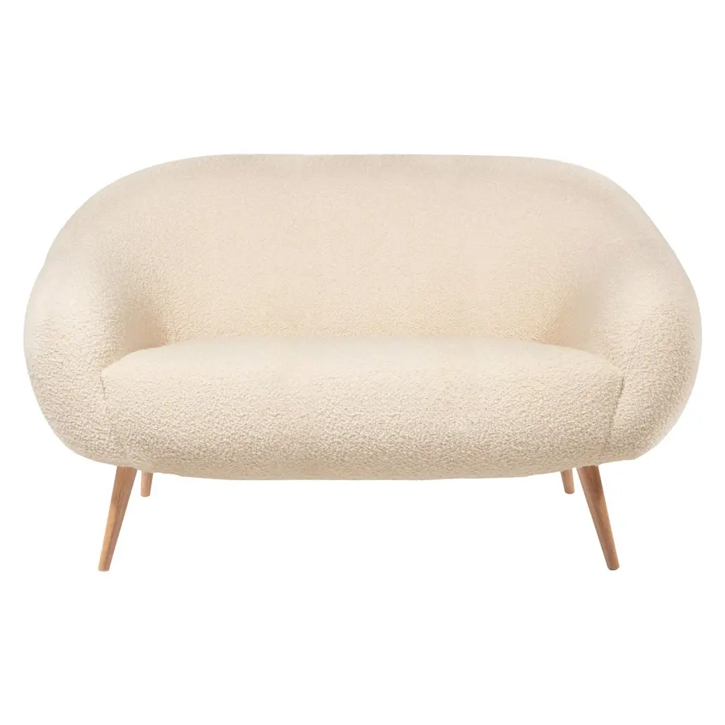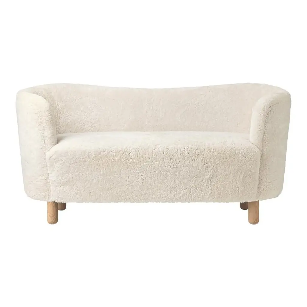 Off white sheepskin and natural oak mingle sofa by Lassen.Dimensions: W 154 x D 68 x H 74 cmMaterials: Sheepskin, oak.The Mingle sofa was designed in 1935 by architect Flemming Lassen (1902-1984) and was presented at The Copenhagen Cabinetmakers’ Guild Competition in the same year. It was subsequently praised for its qualities as a small but elegant sofa in the professional journal “The Architect”. Flemming Lassen loved to travel, and he was often inspired by his journeys throughout Europe. He was very taken with both Italy and France, and had a burning desire to tour those countries on his motorcycle. Flemming Lassen wanted to create a sofa made for conversation with a comfort that invited people to stay seated and talk together for long periods of time. The armrests were designed to encircle the sitters, generating intimacy and transforming the sofa into a cosy place to relax. Flemming Lassen took inspiration from both French elegance and modern Italian style, and transferred the trends and his own ideas to a small, upholstered sofa called Mingle.By Lassen is a Danish design brand focused on iconic designs created by Mogens and Flemming Lassen, founded by Lassens’ relatives in 2008. Brothers Mogens (1901-1987) and Flemming (1902-1984) Lassen are known as two of Denmark’s greatest architects and designers. Both were renowned pioneers of Danish functionalism and modernist architecture, honoured with numerous prestigious medals and awards. Headed by Mogens Lassen’s grandson Søren Lassen, By Lassen carries on the brothers’ design philosophy by manufacturing their iconic designs as well as products by other designers that complement the Lassen’s functionalist style. The company’s mission is to continue the tradition of timelessness, functionality and quality, and to introduce the Lassen’s design heritage to new generations.