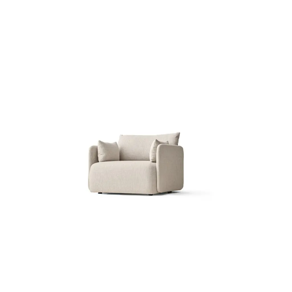 Audo Copenhagen’s Offset 1-seater sofa is Norm Architects’ interpretation of a balance achieved through paradoxes. The armchair boasts a delicate yet substantial expression with an architectural yet cozy feel, and its design combines an inviting, plush seat with narrow armrests and small metal legs. Norm Architects sought inspiration for the silhouettes of the Offset range from minimalist art while still aiming for maximum seating comfort. The Offset 1-seater sofa is upholstered in Kvadrat's durable Savanna 202 fabric. The cushions have been filled with feathers and foam – the softness makes lounging on the sofa exceptionally delightful!