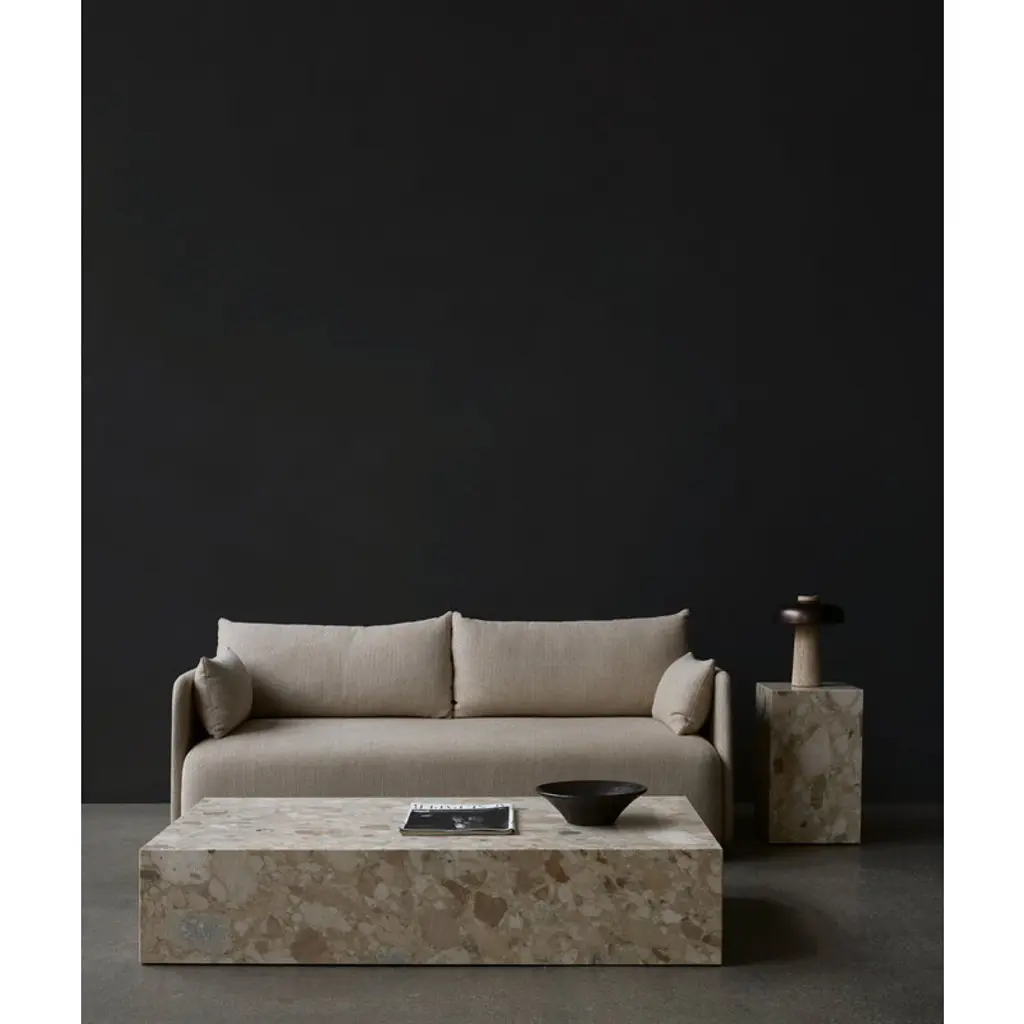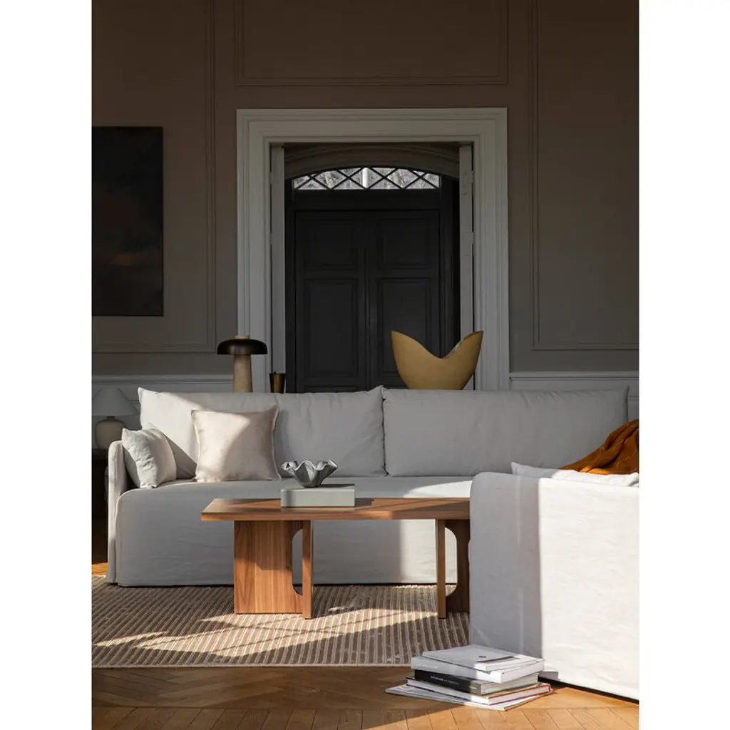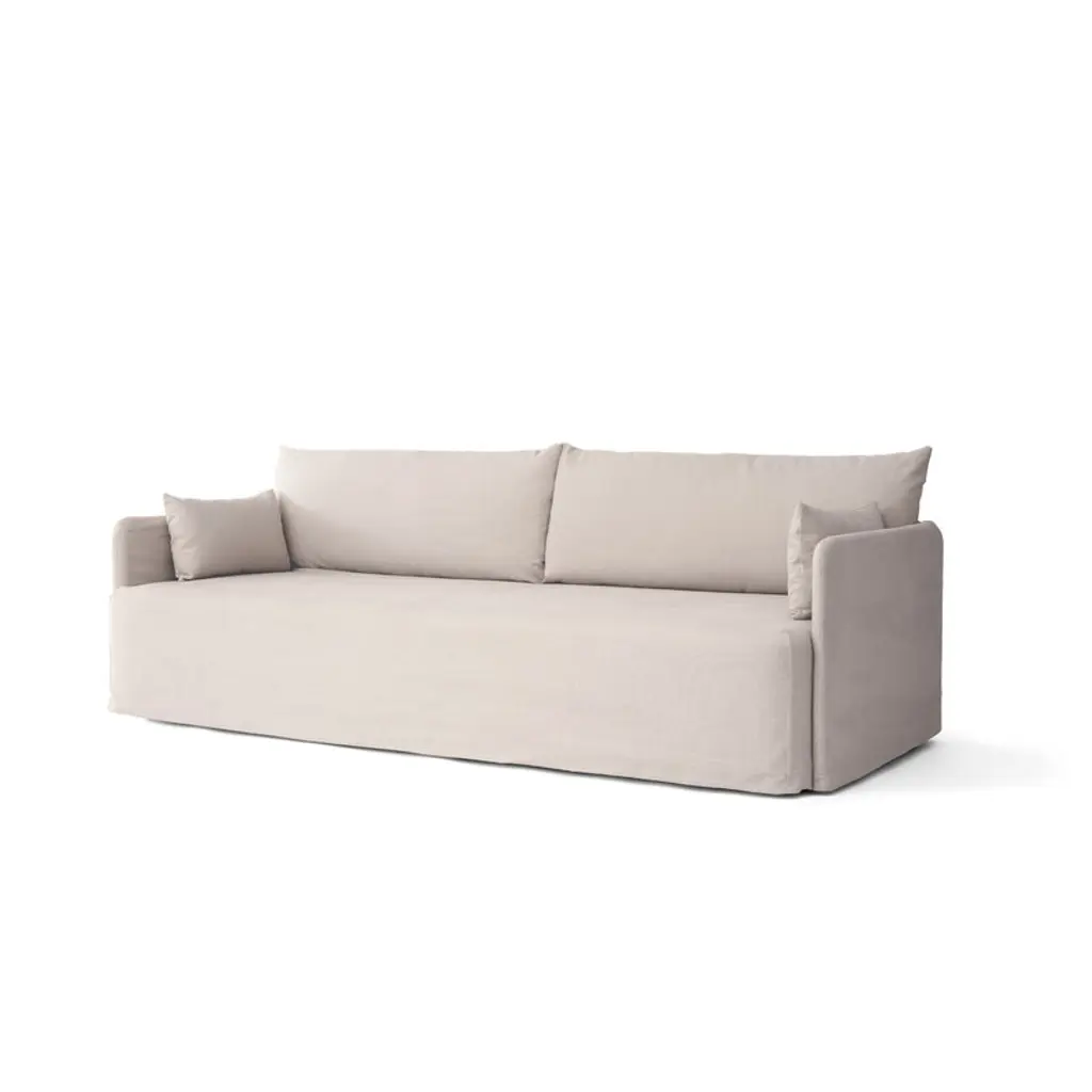 Audo Copenhagen’s Offset 3-seater sofa is Norm Architects’ interpretation of a balance achieved through paradoxes. The sofa boasts a delicate yet substantial expression with an architectural yet cozy feel, and its design combines an inviting, plush seat with narrow armrests and small metal legs. Norm Architects sought inspiration for the silhouettes of the Offset range from minimalist art while still aiming for maximum seating comfort. The Offset 3-seater sofa comes with a detachable and washable loose cover. You can extend the sofa’s lifespan by replacing a worn cover with a new one – and with an extra cover, you can update the look of the sofa whenever you feel like it. The upholstery fabric is made from a beautiful and durable cotton-linen blend, and the soft cushions have been filled with feathers and foam granulate.