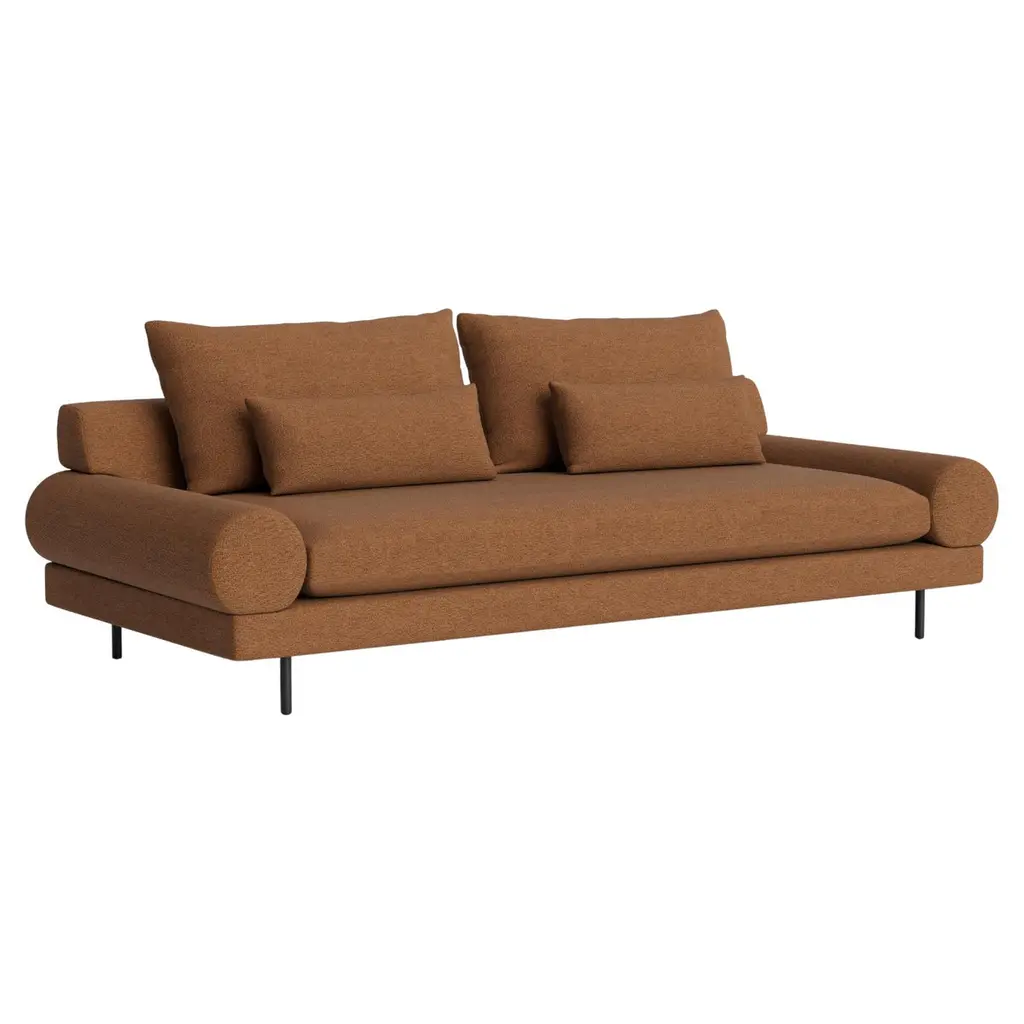 With its thoughtful play of proportions, Offset Sofa makes a statement that resonates without shouting. Juxtaposing narrow armrests with a thickly cushioned, generous seat—"offsetting" in a word—Norm Architects arrived at a clean-lined, attractively boxy shape with beckoningly rounded dimensions, lightly buoyed on short wooden legs.
