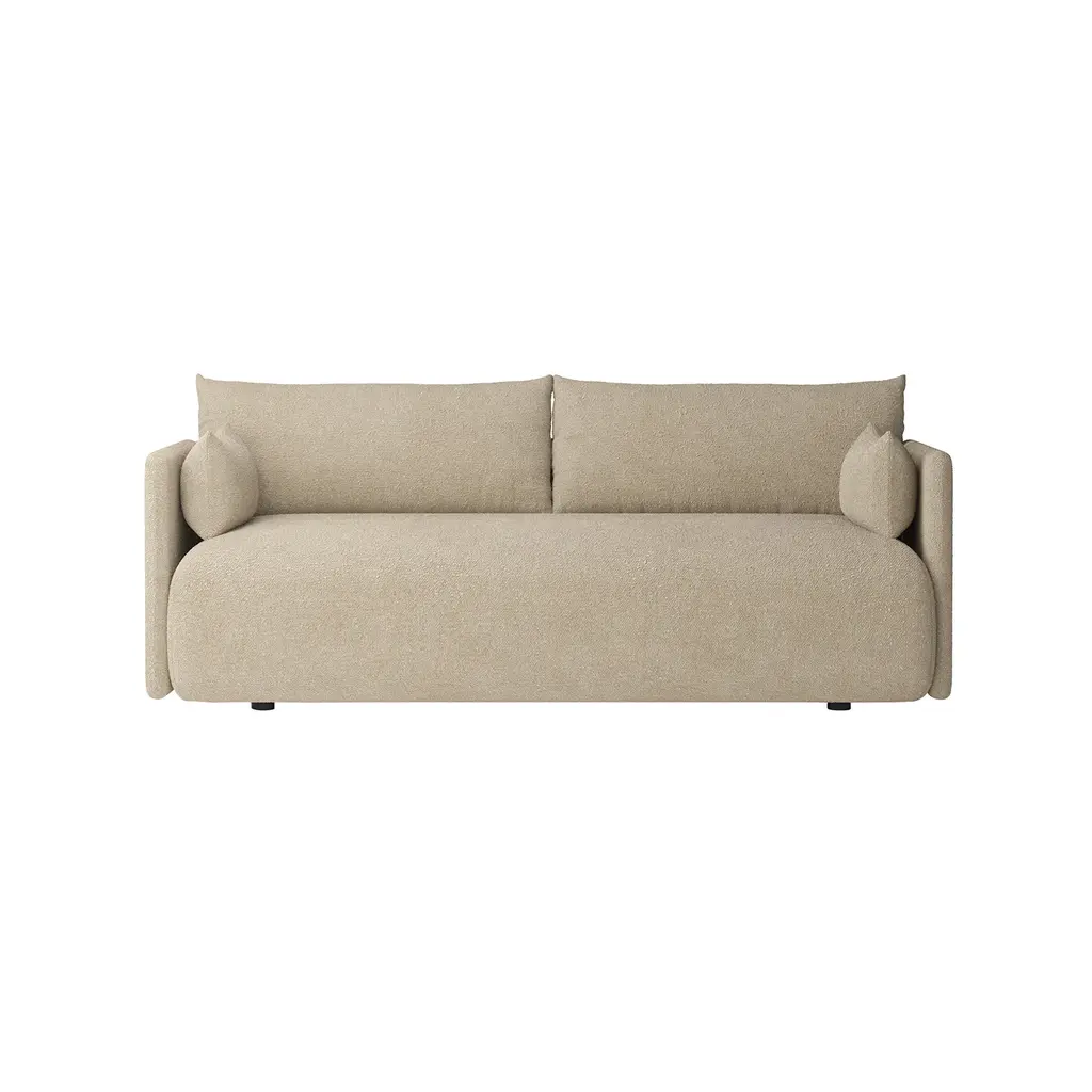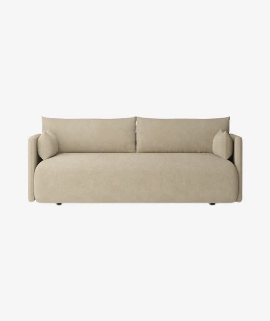 With its thoughtful play of proportions, Offset Sofa makes a statement that resonates without shouting. Juxtaposing narrow armrests with a thickly cushioned, generous seat—"offsetting" in a word—Norm Architects arrived at a clean-lined, attractively boxy shape with beckoningly rounded dimensions, lightly buoyed on short wooden legs.