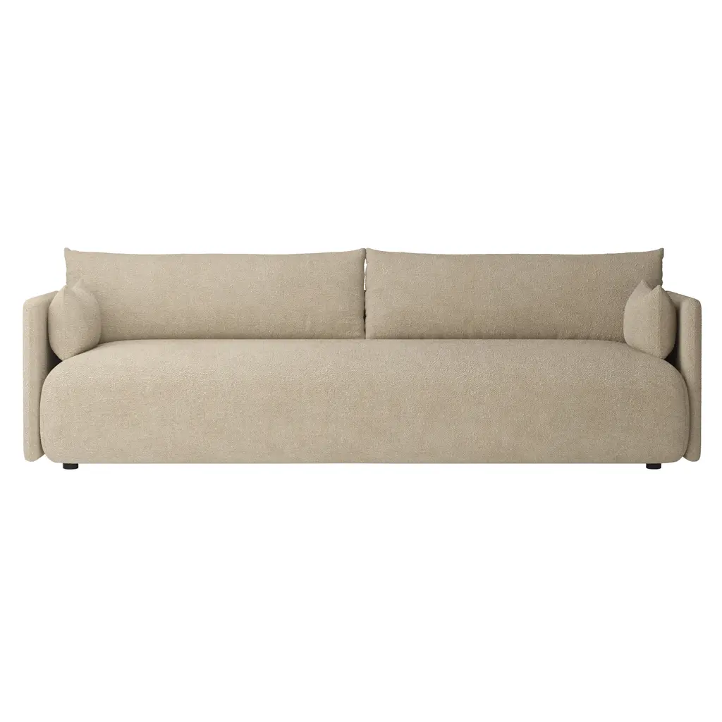 With its thoughtful play of proportions, Offset Sofa makes a statement that resonates without shouting. Juxtaposing narrow armrests with a thickly cushioned, generous seat—"offsetting" in a word—Norm Architects arrived at a clean-lined, attractively boxy shape with beckoningly rounded dimensions, lightly buoyed on short wooden legs.