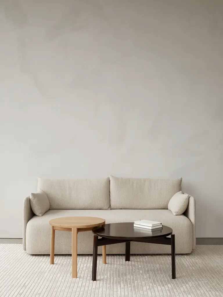 A contemporary sofa, understated yet statement-making, Offset is the result of research into ‘balance’ by Norm Architects. The studio wanted to create a sofa as simply as possible while embracing a set of paradoxes: making it substantial yet delicate in appearance, architectural yet inviting and homey. In the studio, the designers experimented with offsetting, playing with proportions, narrow armrests versus a thick generous seat, supported by four stubby metal legs. The clean-lined boxy shape is inspired by minimalist art, gently softened for a welcoming expression and maximized for comfort.