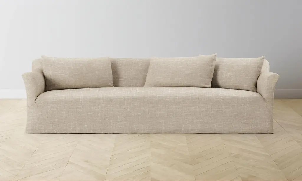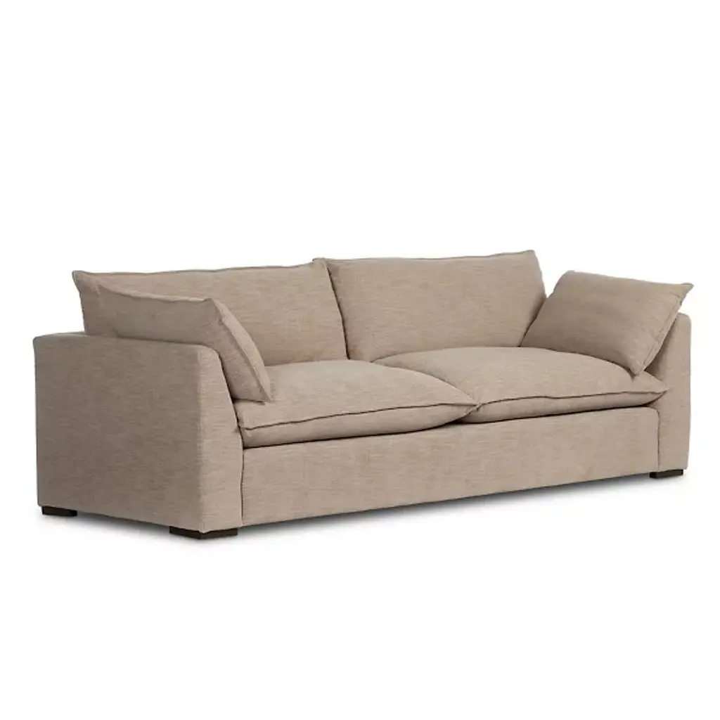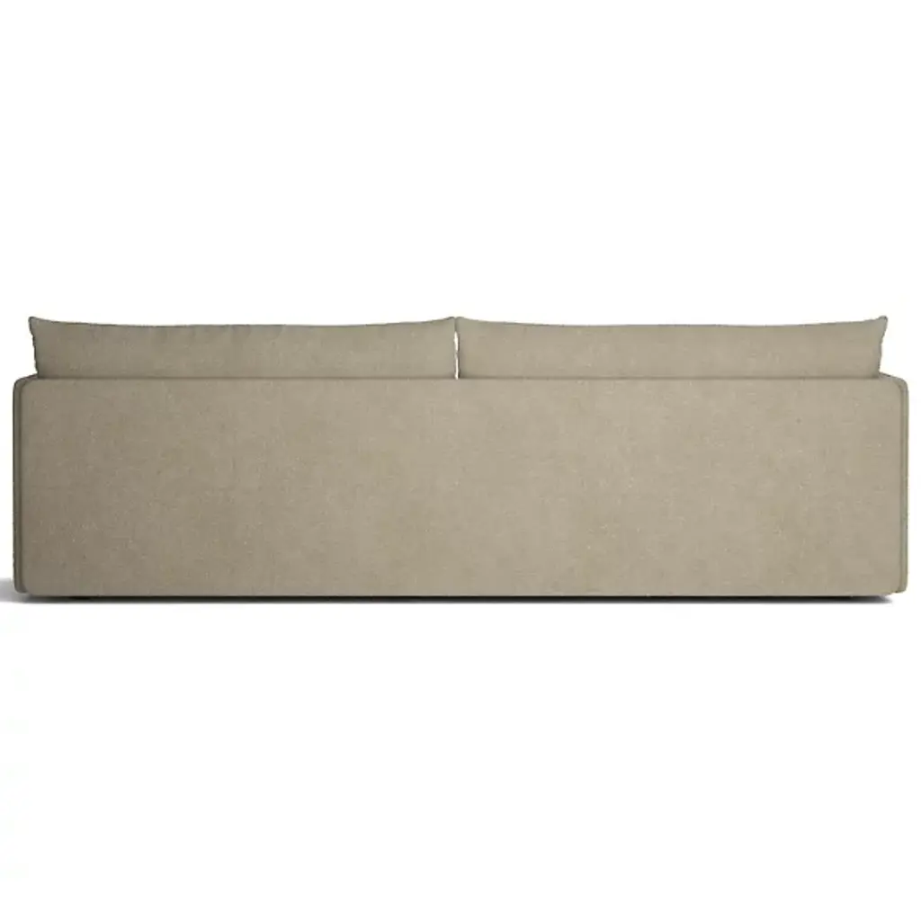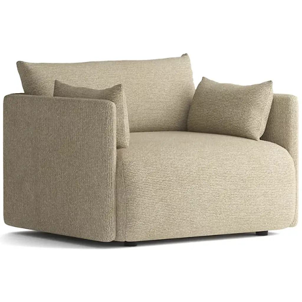 The Offset Sofa by Audo Copenhagen, formerly known as Menu, was created by Norm Architects as they researched balance. They wanted to create a piece that embraces a set of paradoxes: something that was substantial yet delicate in appearance and architectural yet inviting. The creation process included experimenting with offsetting – playing with proportions, which resulted in a clean-lined and boxy shaped sofa that has a minimalistic look. A structural frame supports a set of comfortable foam cushions that do not contain zig-zag springs, making it a great spot to relax. Narrow armrests complete this design, and it is elevated slightly thanks to a set of metal legs. A foam granulate and feather blend comprises the sofa's comfy filler.