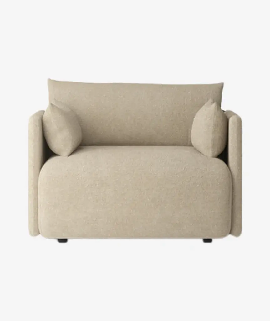 A contemporary sofa, understated yet statement-making, Offset is the result of research into ‘balance’ by Norm Architects. The studio wanted to create a sofa as simply as possible while embracing a set of paradoxes: making it substantial yet delicate in appearance, architectural yet inviting and homey. In the studio, the designers experimented with offsetting, playing with proportions, narrow armrests versus a thick generous seat, supported by four stubby metal legs. The clean-lined boxy shape is inspired by minimalist art, gently softened for a welcoming expression and maximized for comfort.
