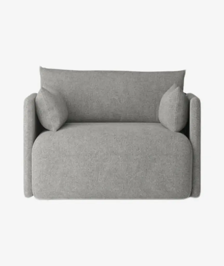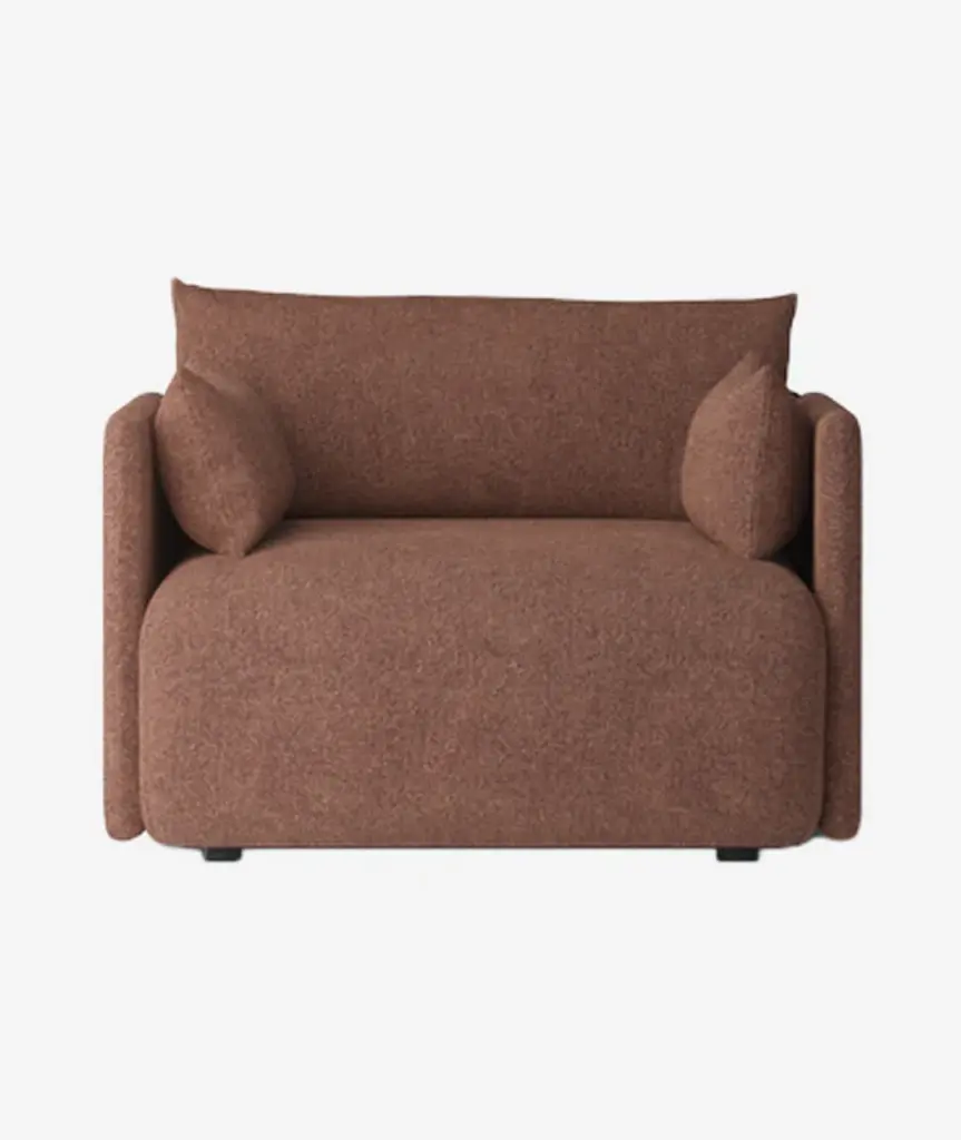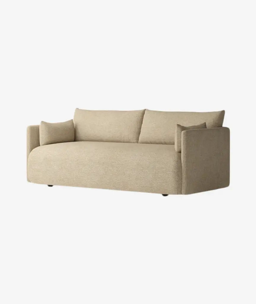 A contemporary sofa, understated yet statement-making, Offset is the result of research into ‘balance’ by Norm Architects. The studio wanted to create a sofa as simply as possible while embracing a set of paradoxes: making it substantial yet delicate in appearance, architectural yet inviting and homey. In the studio, the designers experimented with offsetting, playing with proportions, narrow armrests versus a thick generous seat, supported by four stubby metal legs. The clean-lined boxy shape is inspired by minimalist art, gently softened for a welcoming expression and maximized for comfort.