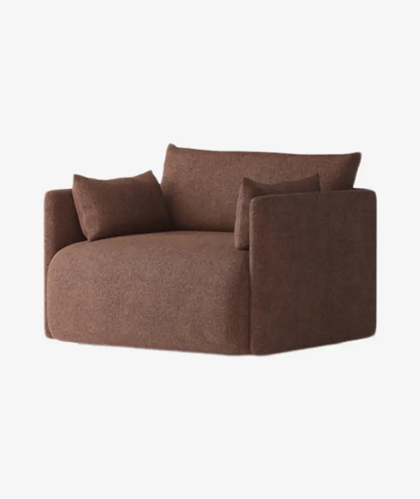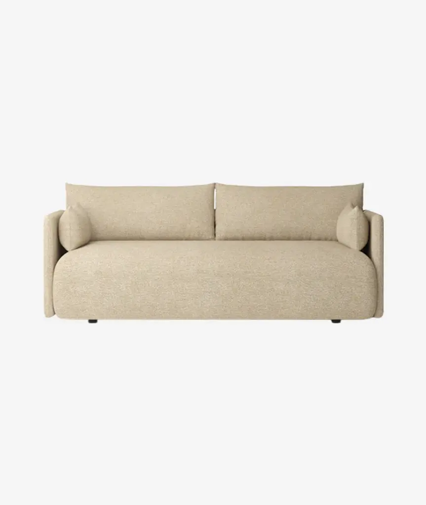 A contemporary sofa, understated yet statement-making, Offset is the result of research into ‘balance’ by Norm Architects. The studio wanted to create a sofa as simply as possible while embracing a set of paradoxes: making it substantial yet delicate in appearance, architectural yet inviting and homey. In the studio, the designers experimented with offsetting, playing with proportions, narrow armrests versus a thick generous seat, supported by four stubby metal legs. The clean-lined boxy shape is inspired by minimalist art, gently softened for a welcoming expression and maximized for comfort.