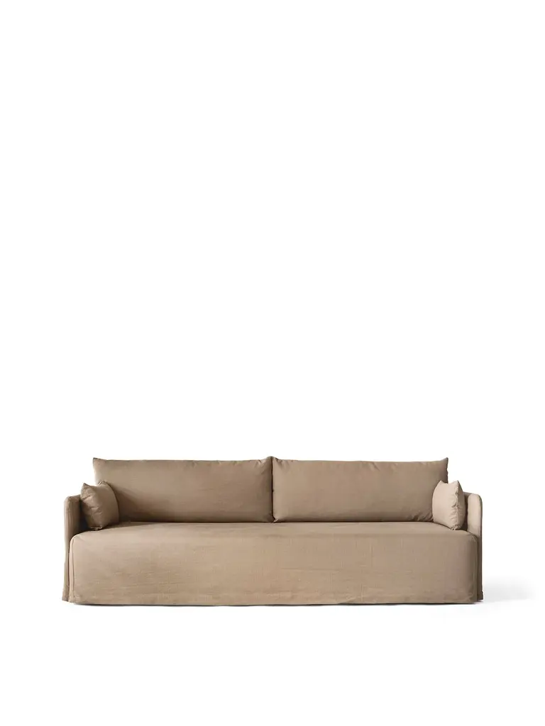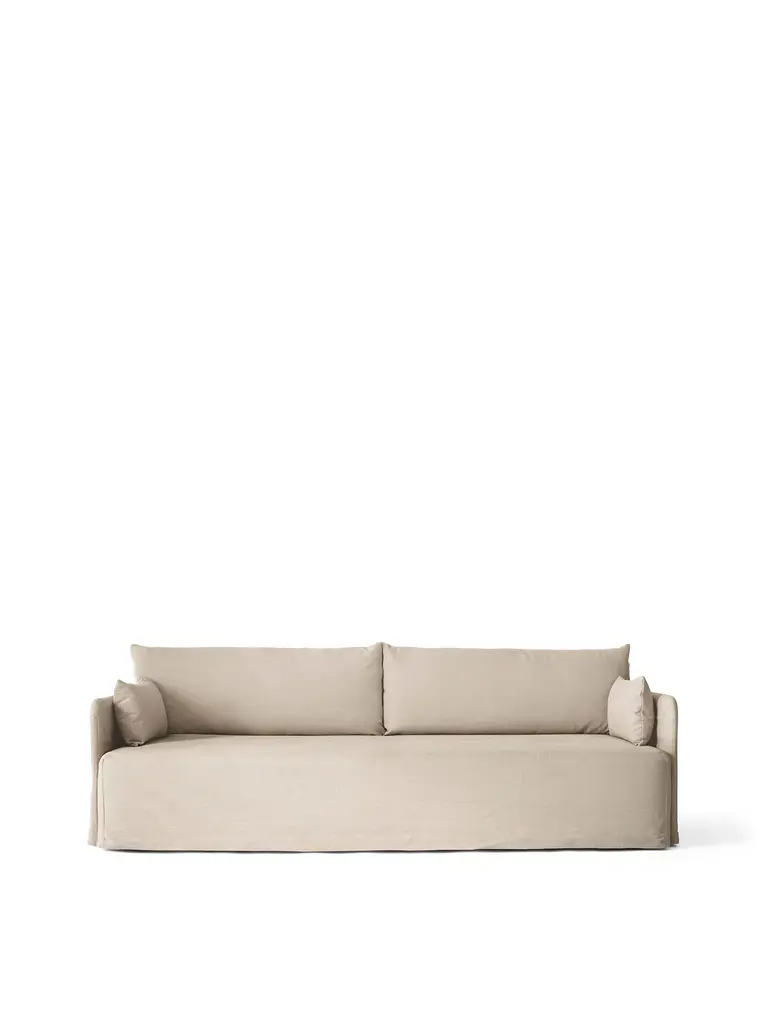 This product fulfils 8/10 Responsibility Criteria. Read more Offset is the result of research into ‘balance’ by Norm Architects. The studio wanted to create a sofa as simply as possible while embracing a set of paradoxes: making it substantial yet delicate in appearance, architectural yet inviting and homey. The Offset Loose Cover introduces increased longevity, functionality and versatility to the collection, with a removable and washable exterior crafted from a custom-made cotton and linen blend textile in three timeless colors. The soft, natural and easy to clean cover creates a relaxed silhouette for the Offset, imbuing spaces with a sense of casual elegance. The internal body of the sofa has an inherently longer life than its cover, which can become worn with time and daily use. By creating a removable cover for the Offset, it is possible to retain the body whilst simply replacing the cover—extending the product’s lifespan and reducing the instance of waste. In this way, the Offset Loose Cover can also adapt to evolving lifestyles, design and color preferences to be cherished for generations. The frame of the Offset sofa is constructed from FSC-certified wood and the back and side cushions are made from a double foam core encased in a feather down and foam blend for superior comfort and durability. The loose cover is secured to the sofa and armrests in one streamlined piece, with a concealed Velcro strip allowing for convenient removal.