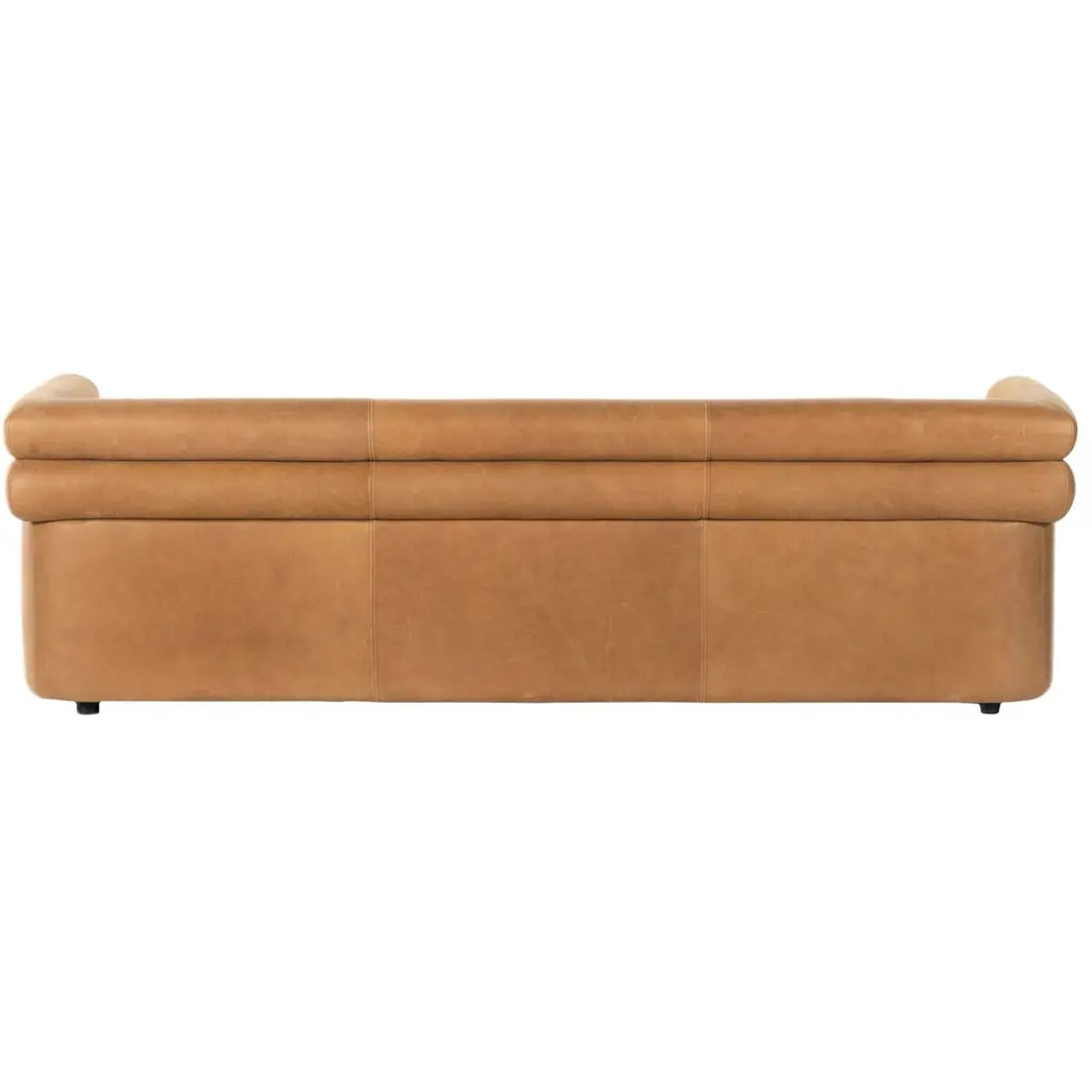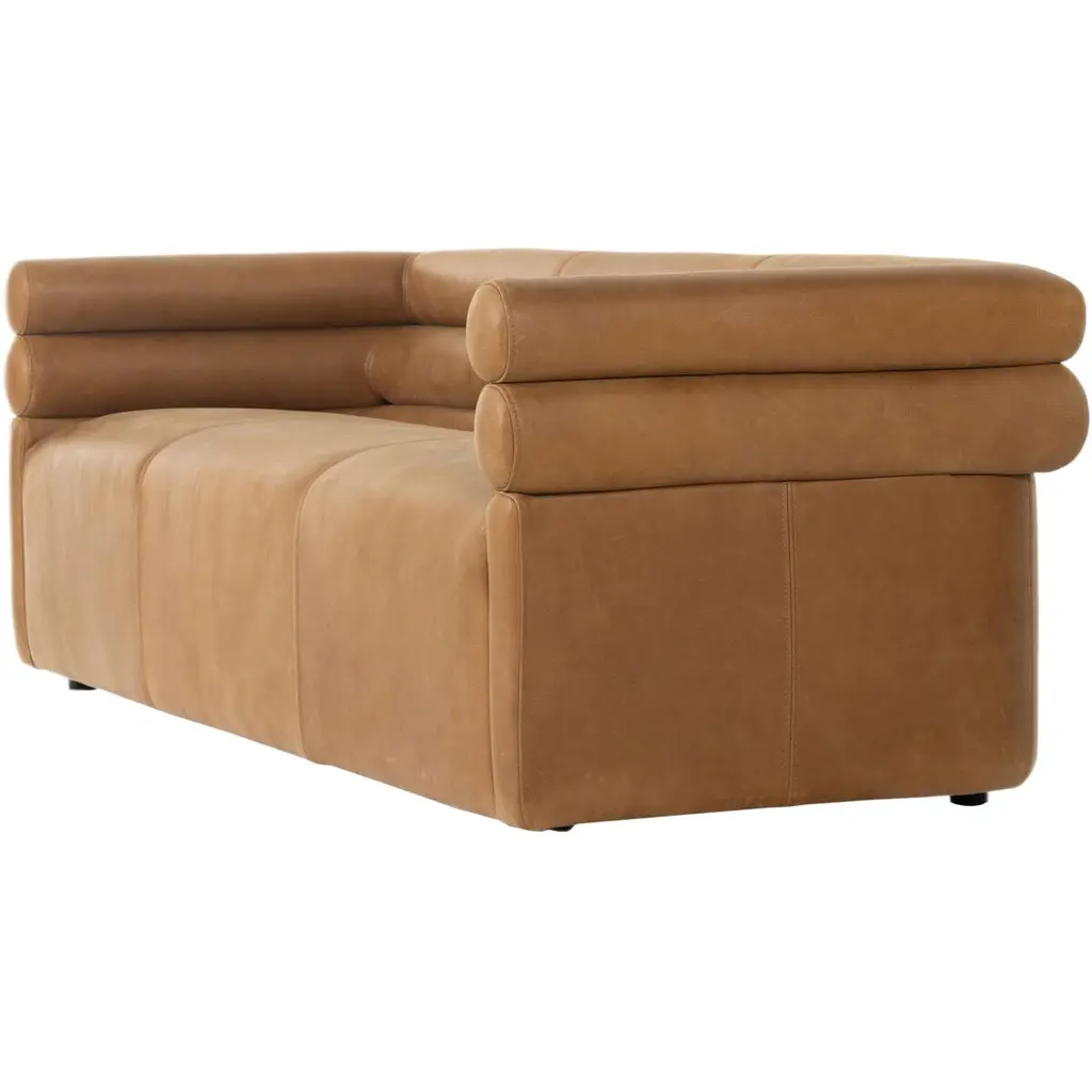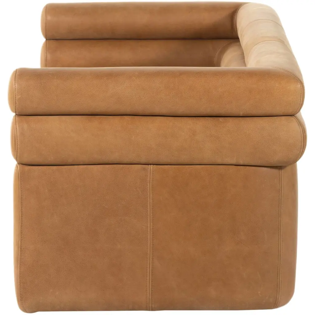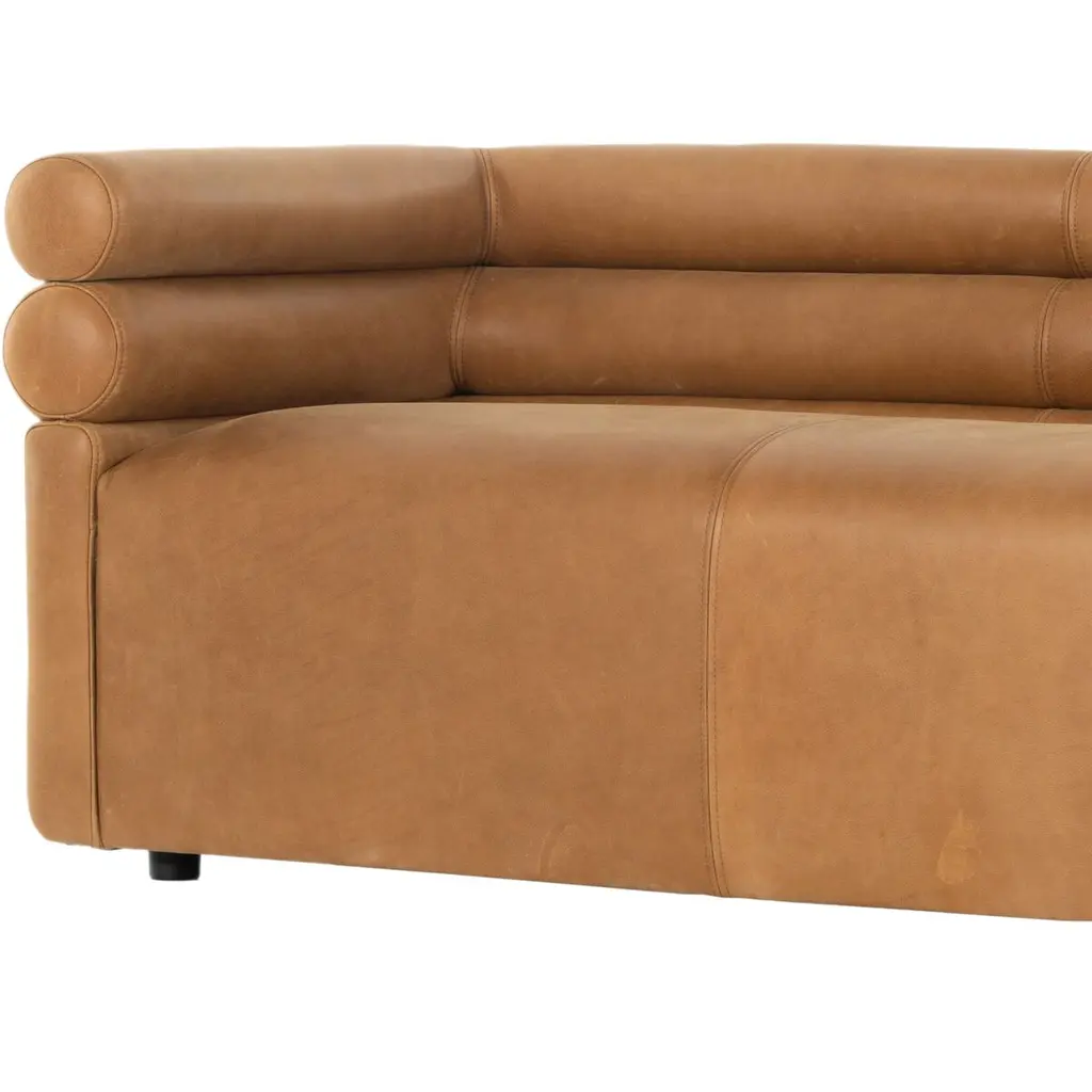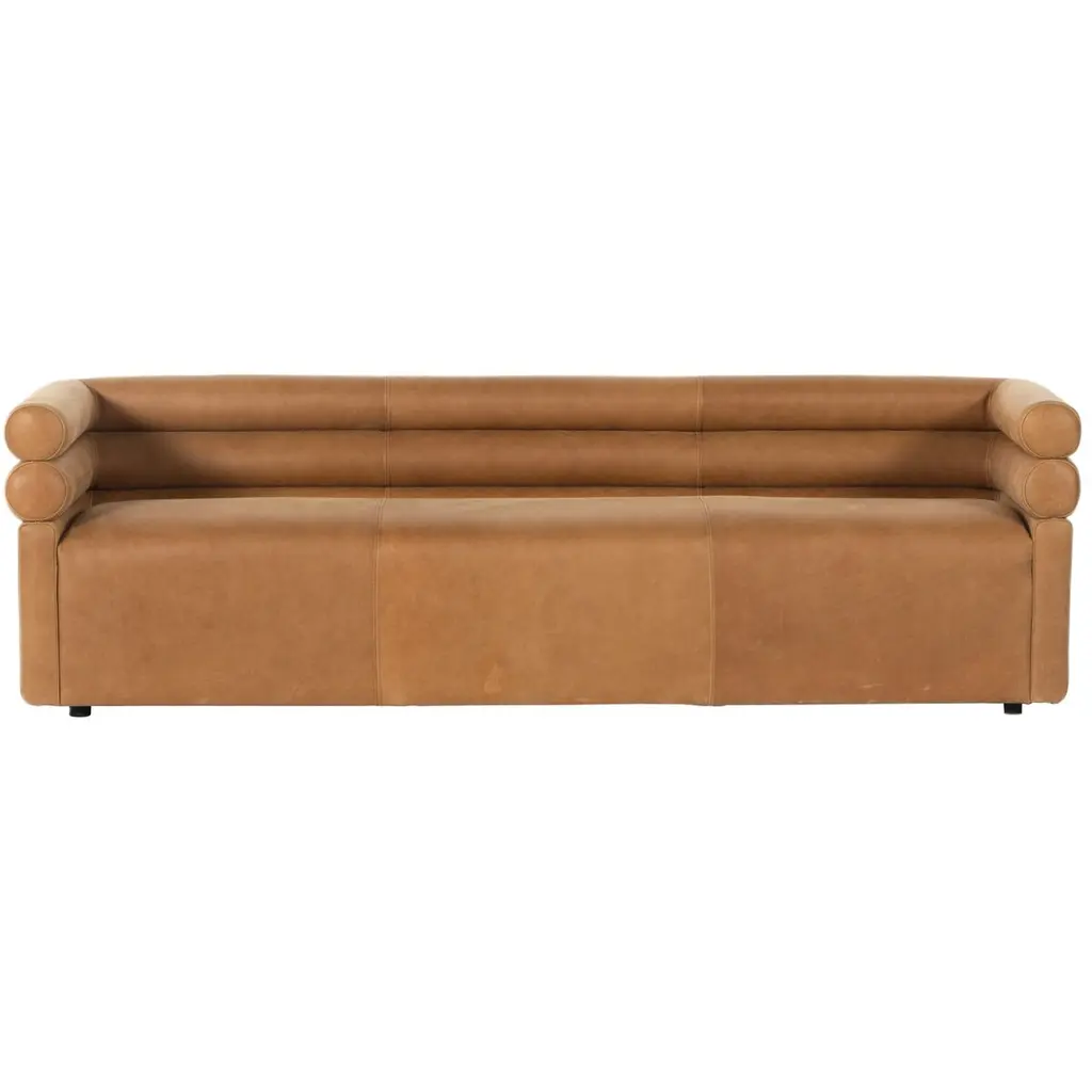 Horizontal channeling lends a clean, linear look to this unique sofa style, while top-grain leather brings a touch of luxury to the modern living room.