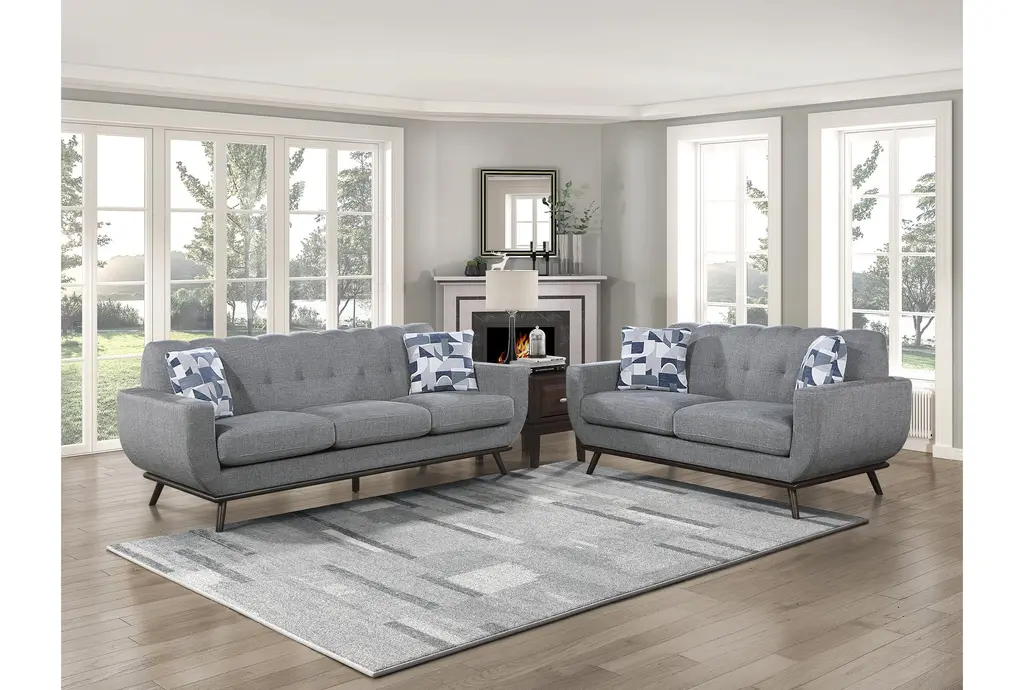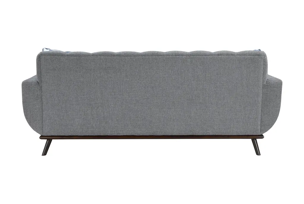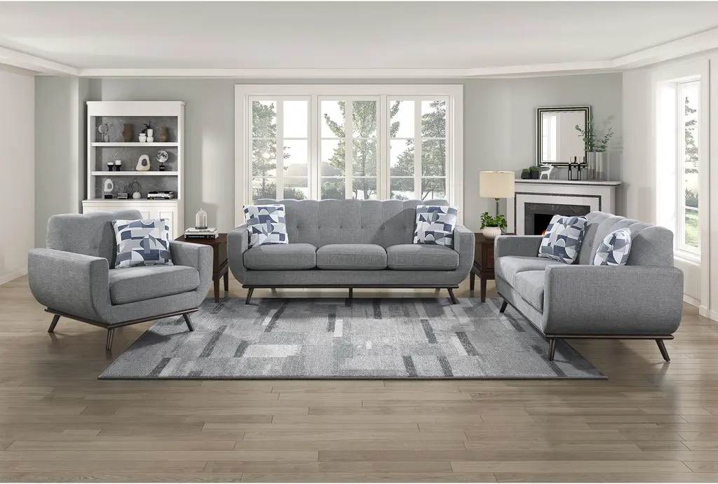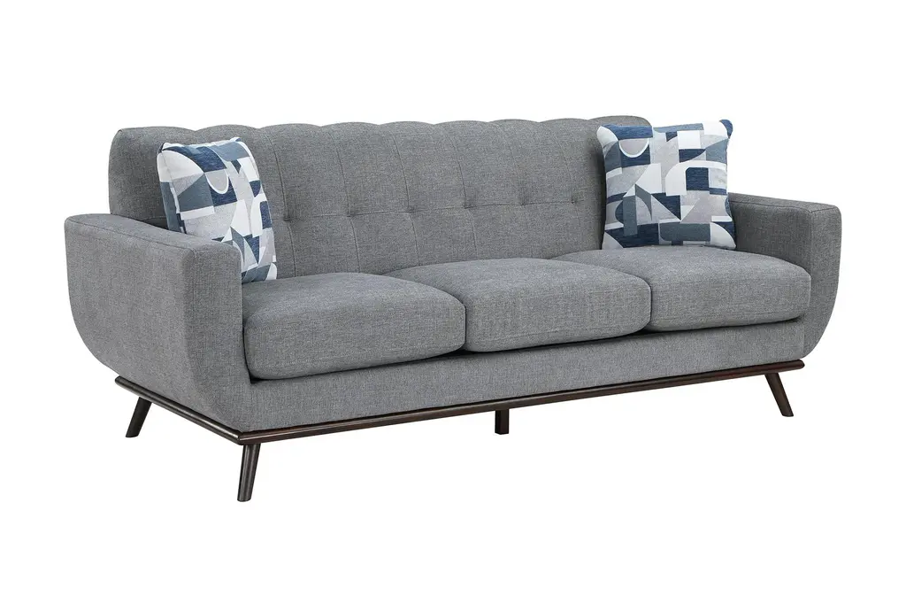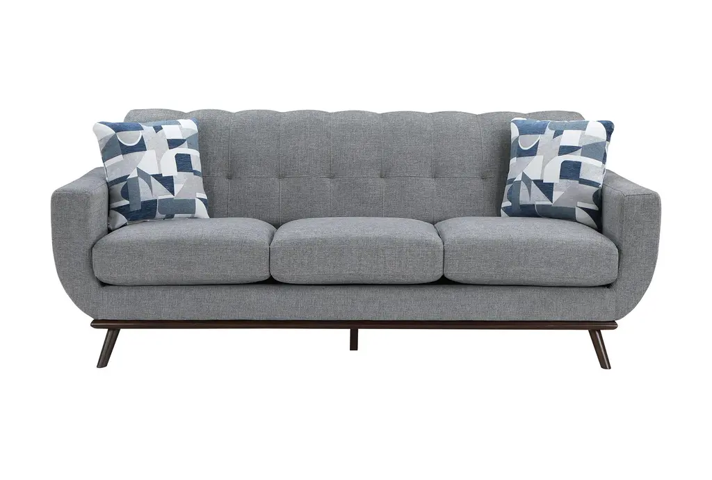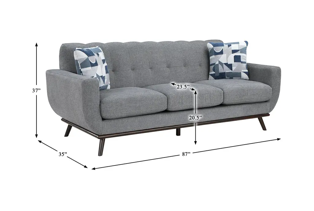 The Olympia Grey Fabric 87" Sofa offers a perfect blend of casual style and comfort, making it an ideal addition to any living space. Upholstered in soft chenille fabric, this sofa features a solid wood and plywood frame for durability and solid wood legs in a walnut finish for a touch of elegance. The removable seat cushion covers with zippers and included decorative pillows add convenience and style.