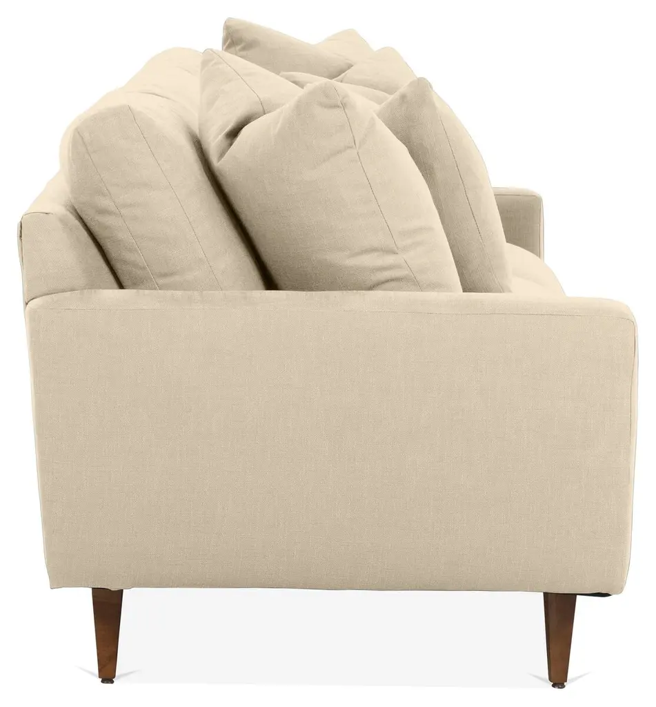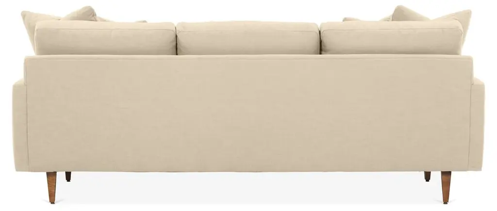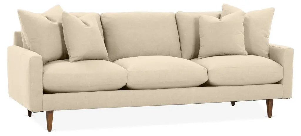 Exclusive to One Kings Lane: With its indigo hue and midcentury-inspired silhouette, this three-seat sofa feels fresh and modern in any space. And because it's upholstered in Crypton--an eco-friendly, high-performance fabric--it repels stains, spills, bacteria, and mold. Four throw pillows included. Handcrafted in the USA.