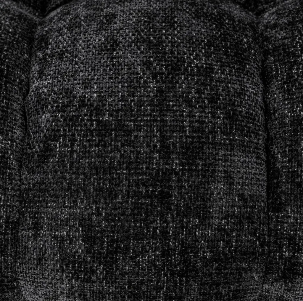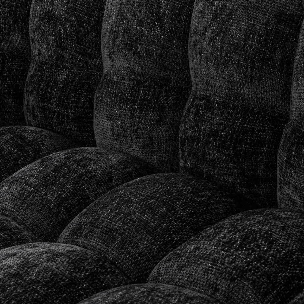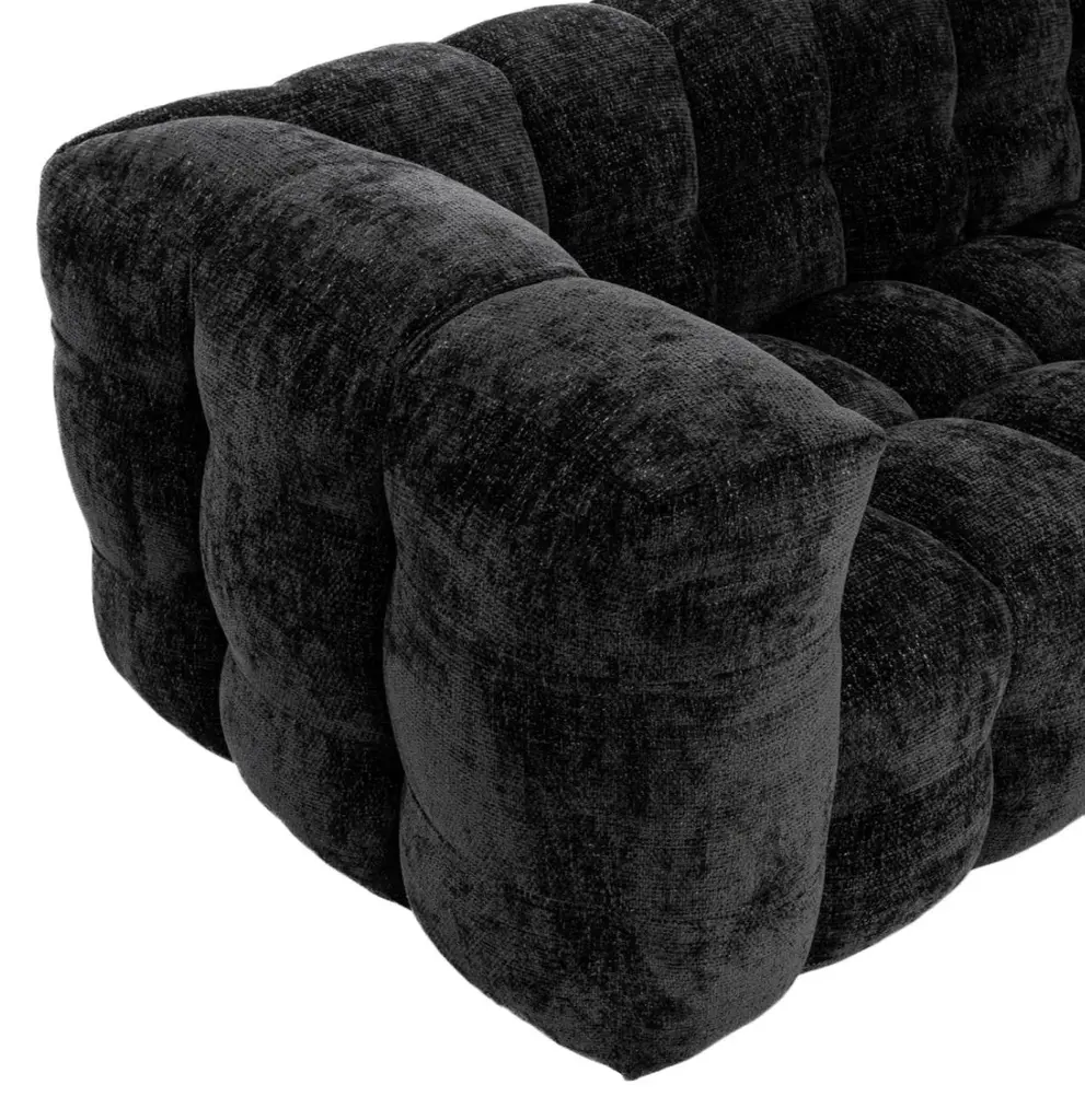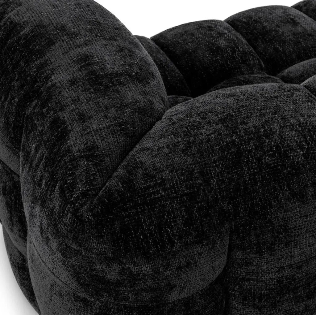 Handsome onyx black chenille upholstered sofa with plush square quilt tufting detail. Attractive modern piece wonderful for many interior spaces.