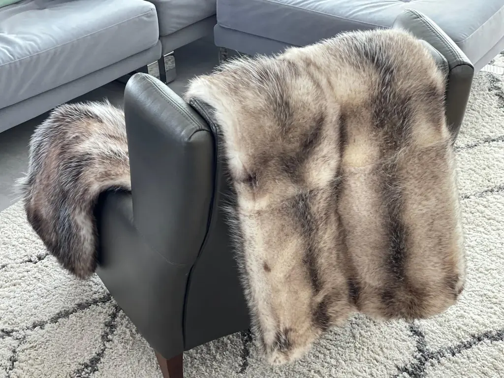 Opossum Fur Bed / Sofa Throw Blanket. Merino Wool Backing