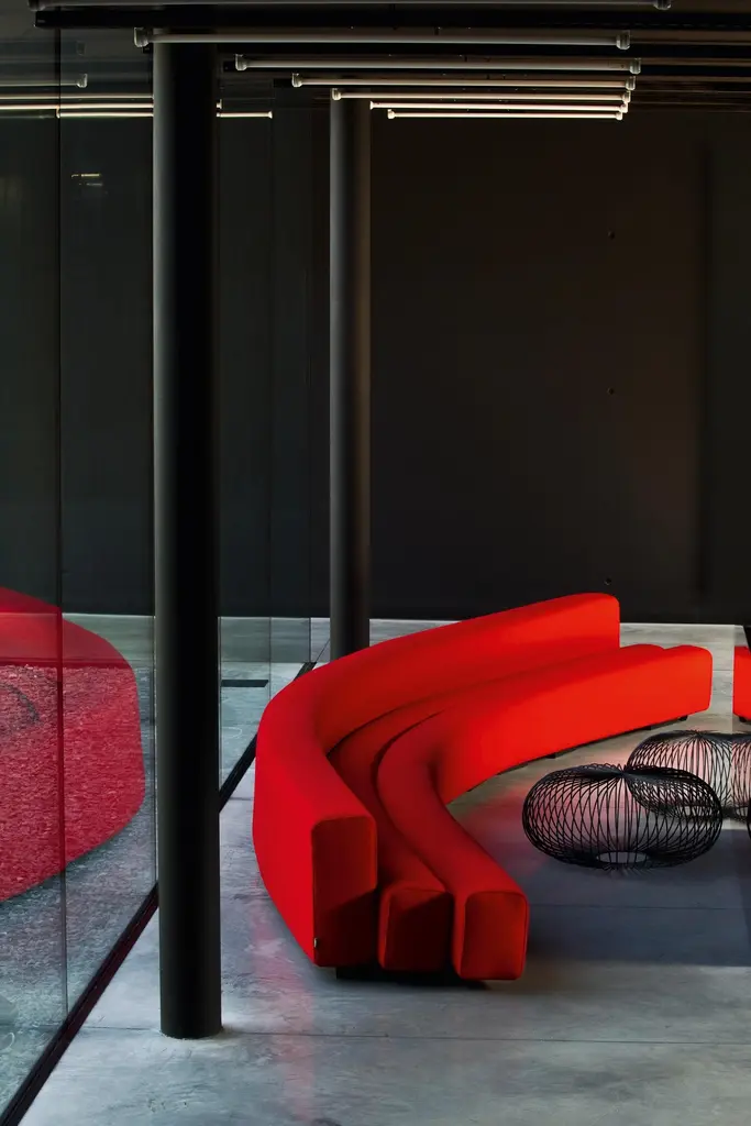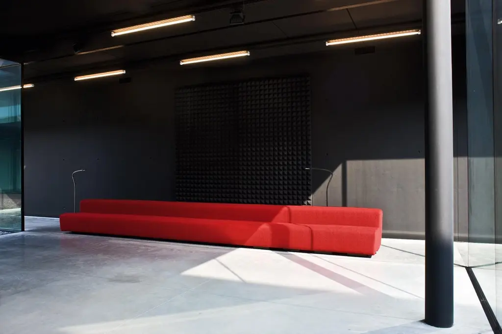 In 1967, the French designer Pierre Paulin challenged the rationalism that was predominant at the time by envisaging a range of seats with naturally winding lines. Developed for Expo 1970 in the city after which it is named, the Osaka sofa has been revitalized by LaCividina. Endless seating solutions can be created simply by joining together its straight and curved modules.Additional Info:Material: UpholsteryFinish: Cat. B, Stretchy, BlueMetal finish: BlackDimensions: 430 W x 78 D x 67 H cmSeat height: 42 cmAvailable in other upholstery optionsAvailable in other structural options