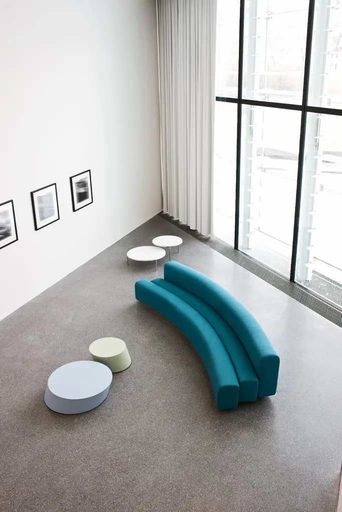 In 1967, the French designer Pierre Paulin challenged the rationalism that was predominant at the time by envisaging a range of seats with naturally winding lines. Developed for Expo 1970 in the city after which it is named, the Osaka sofa has been revitalized by LaCividina. Endless seating solutions can be created simply by joining together its straight and curved modules.Additional Info:Material: UpholsteryFinish: Cat. B, Stretchy, BlueMetal finish: BlackDimensions: 380 W x 78 D x 67 H cmSeat height: 42 cmAvailable in other upholstery optionsAvailable in other structural options