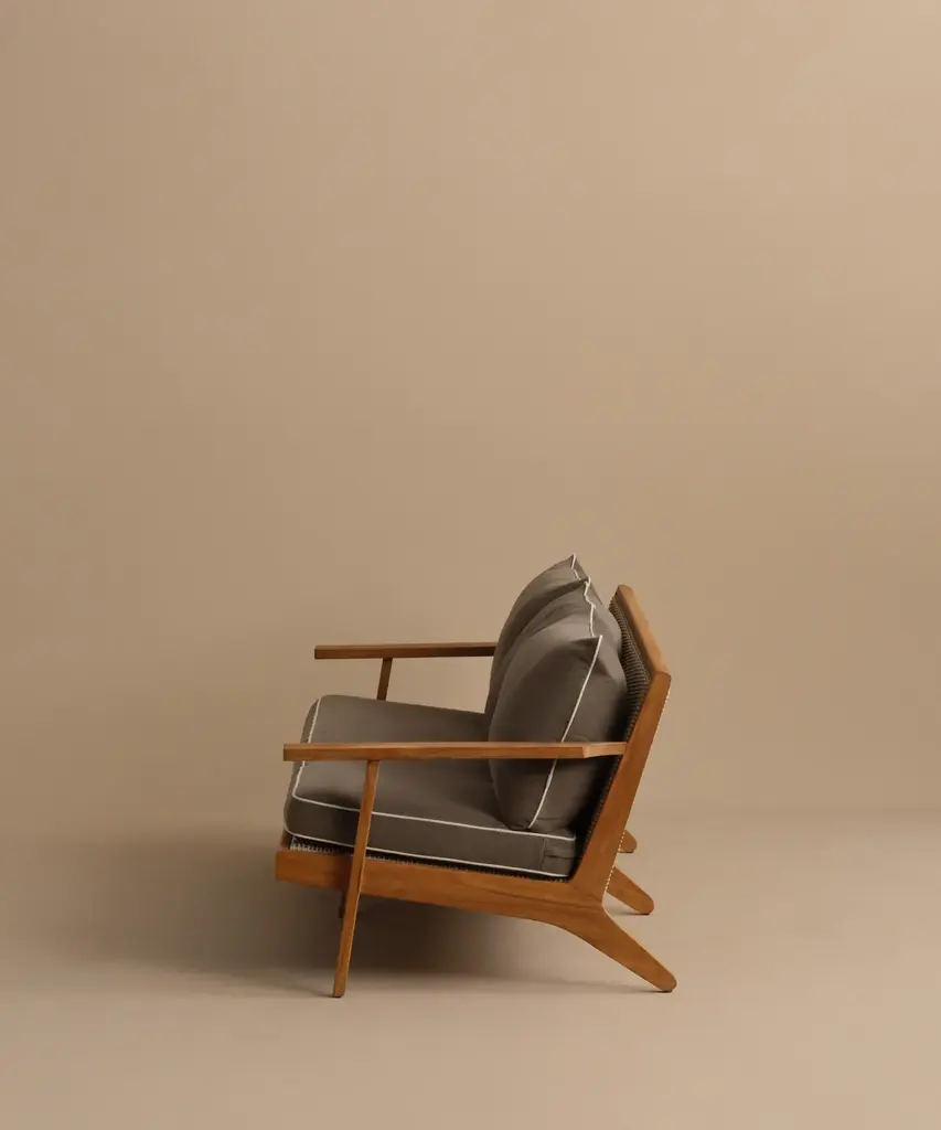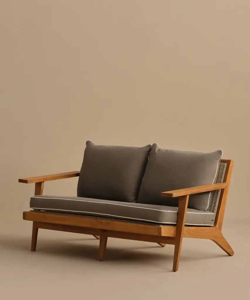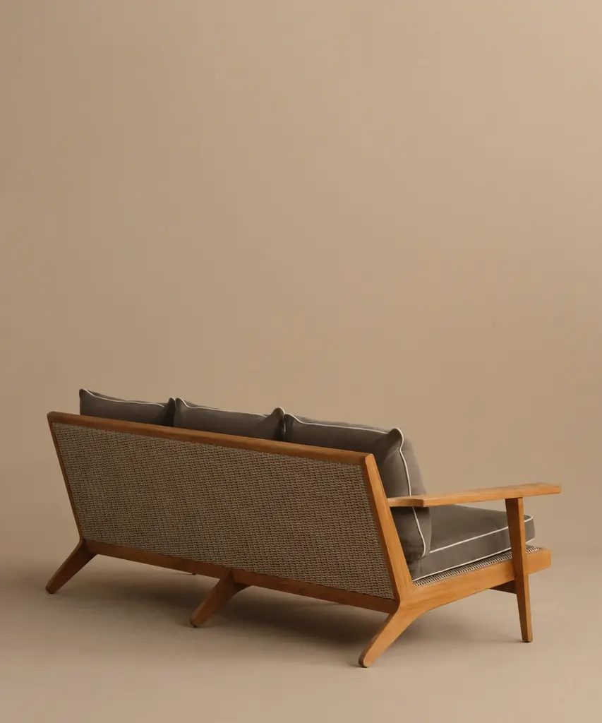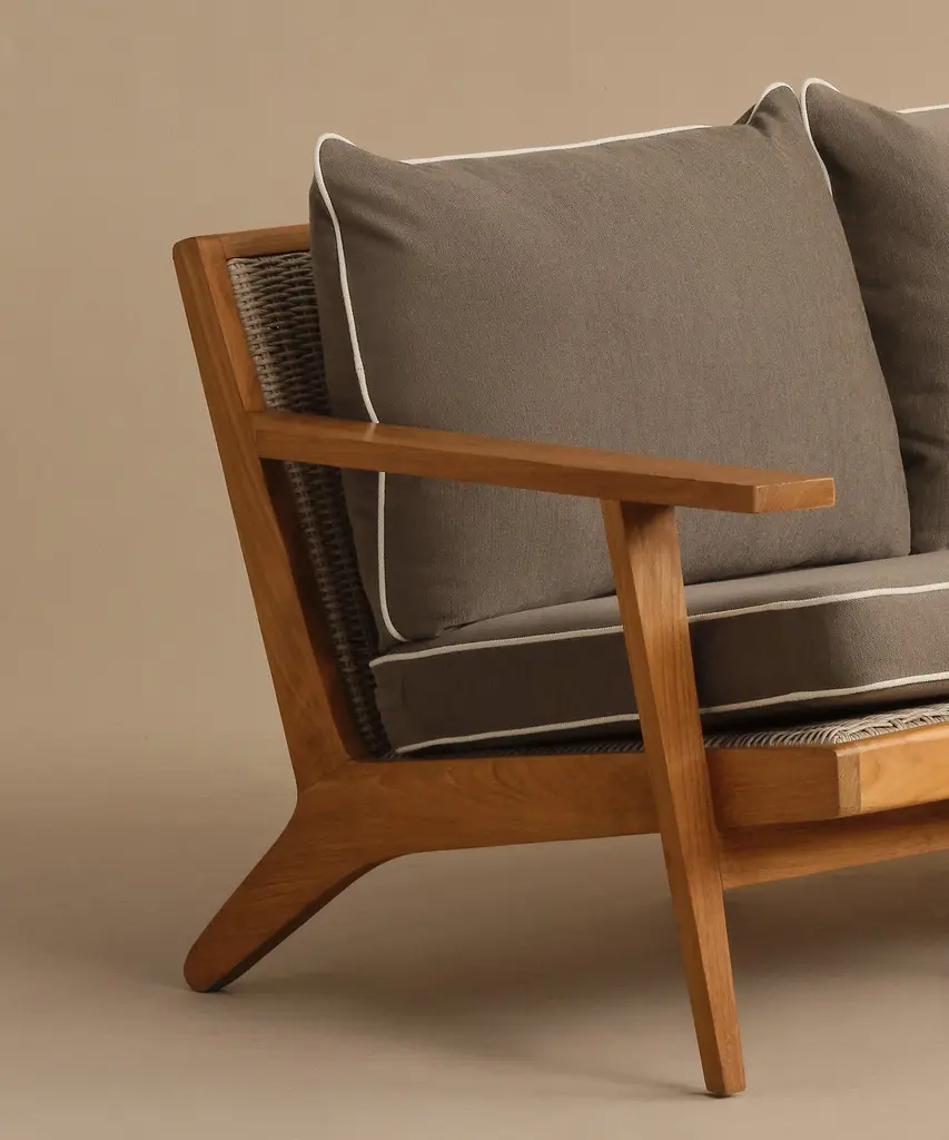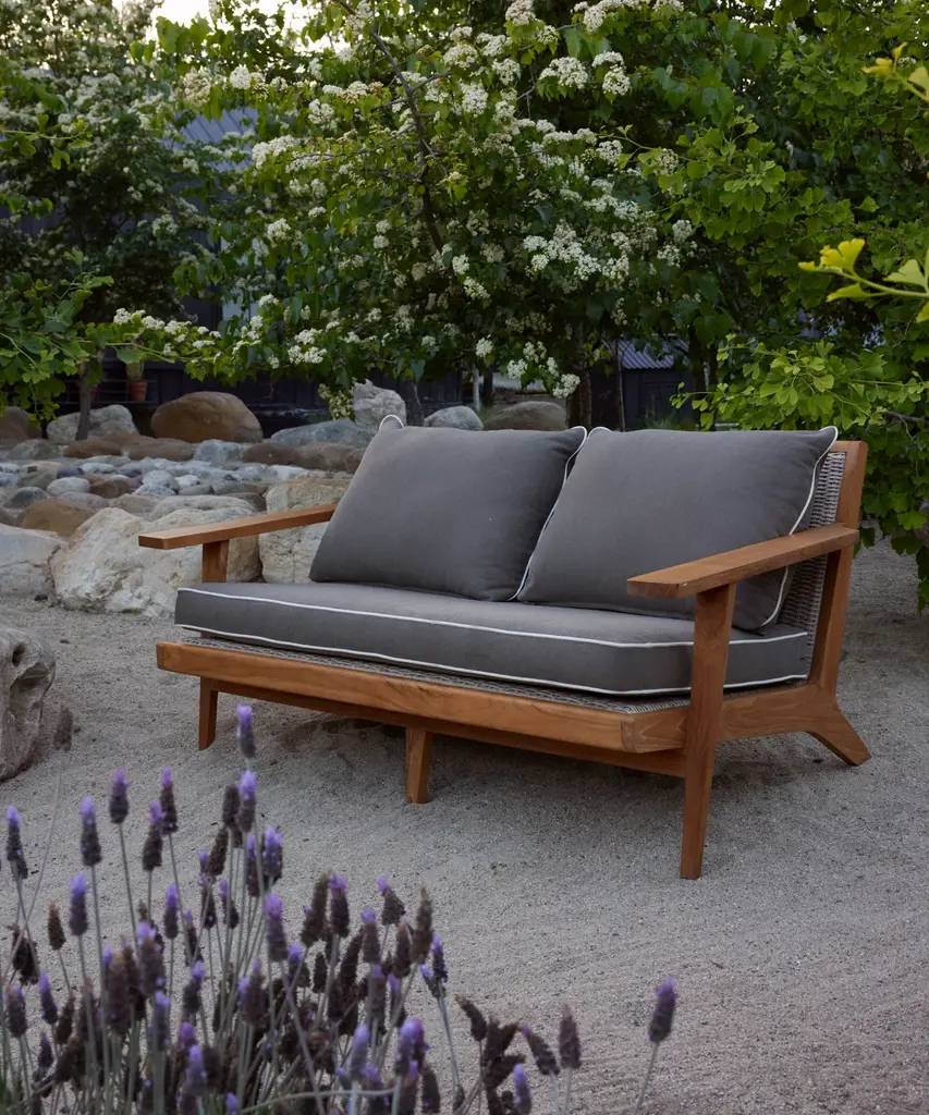 Outdoor Vista Sofa Taupe/Parchment Outdoor sofa made from solid sustainably-sourced, Grade-A teak with a natural finish. Features corrosion-resistant stainless steel hardware and a seat and back crafted from ECOLENE—engineered for superior durability, resistance to temperature fluctuations, and free from cracking, splintering, or corrosion, all while maintaining a natural look and feel. Includes cushion made with Italian Tempotest fabric and woven from 100% solution-dyed acrylic. The Tempotest fabrics are resistant to water, mold, and mildew. With the new CO finish, it is not resistant to oil, but any oil stains can be cleaned according to the cleaning instructions provided. The 56” Vista Sofa comes with one seat cushion and two back cushions, and the 79” Vista Sofa comes with one seat cushion and three back cushions. All come with slipcovers and zipper closures. Includes outdoor foam cushion fill. For furniture purchases, please refer to our furniture inspection policy here, and for help styling this piece in your space, contact [email protected] for a complimentary consultation.CA Residents: Prop 65 Information