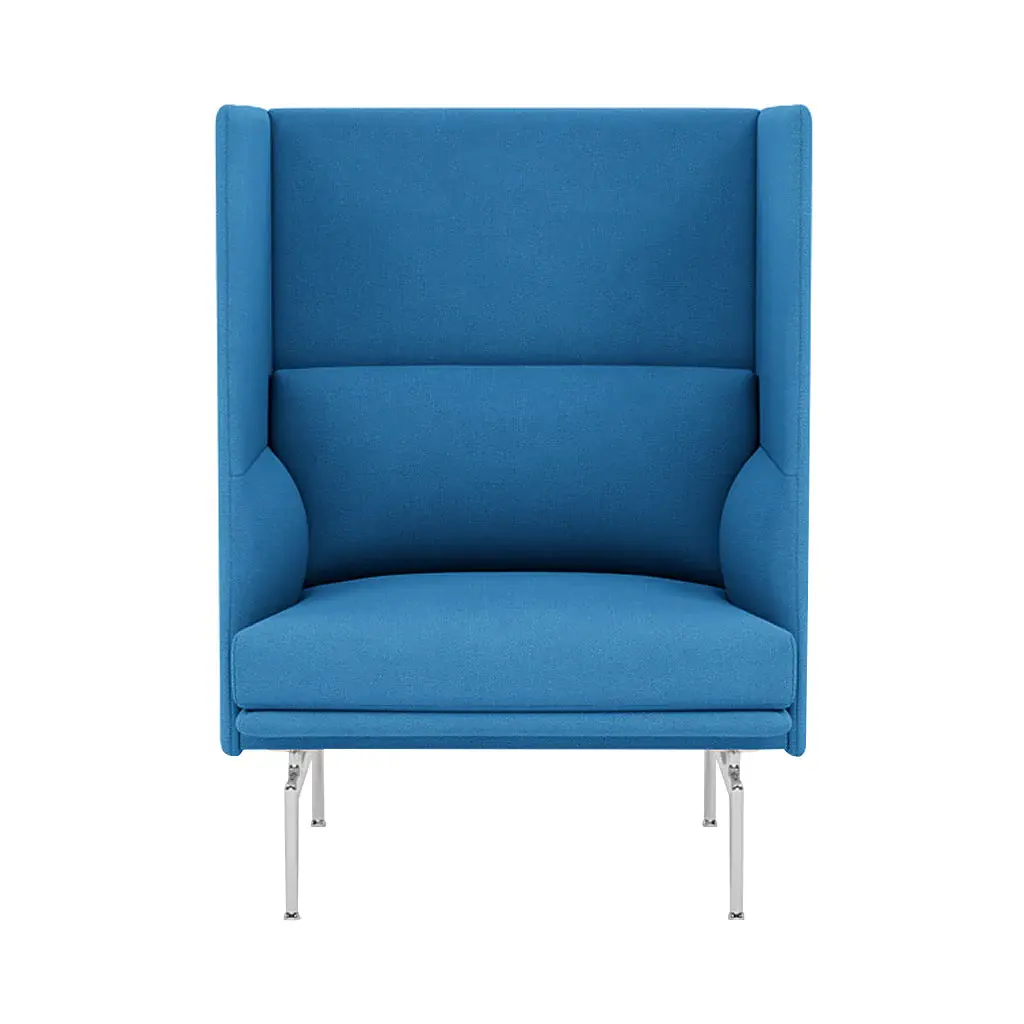Muuto’s single-seater provides a maximum zone of individual privacy in Outline Highback’s tallest version, with its mix of soft, deeply proportioned comfort and protective boxlike enclosure. Offering a range of custom upholstery choices and trim legs in polished or black aluminum, it makes a welcome haven in open-plan areas.