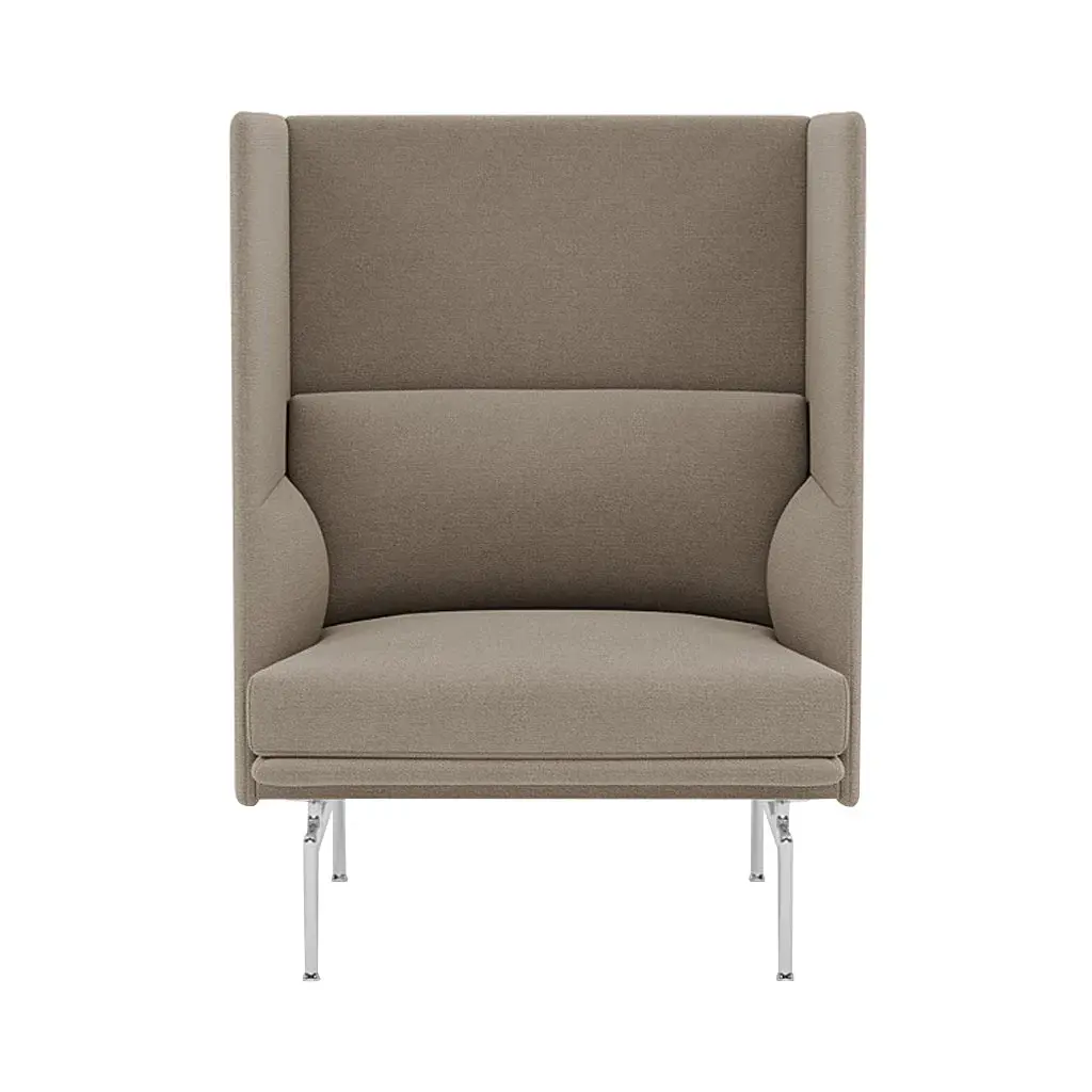 Muuto’s single-seater provides a maximum zone of individual privacy in Outline Highback’s tallest version, with its mix of soft, deeply proportioned comfort and protective boxlike enclosure. Offering a range of custom upholstery choices and trim legs in polished or black aluminum, it makes a welcome haven in open-plan areas.