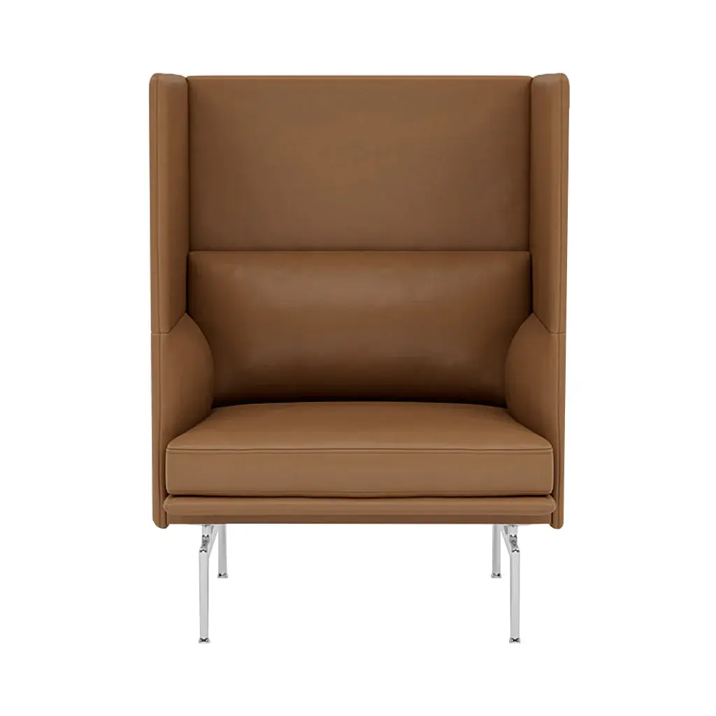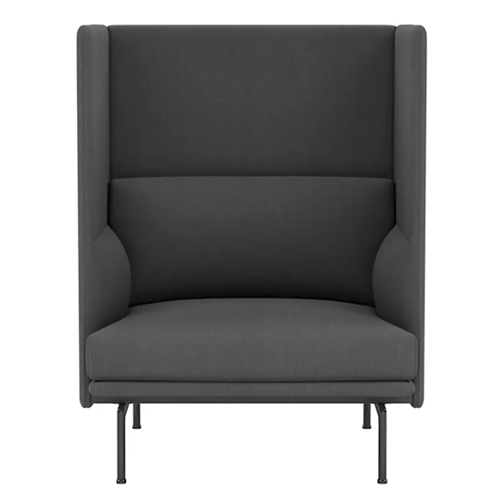 Muuto’s single-seater provides a maximum zone of individual privacy in Outline Highback’s tallest version, with its mix of soft, deeply proportioned comfort and protective boxlike enclosure. Offering a range of custom upholstery choices and trim legs in polished or black aluminum, it makes a welcome haven in open-plan areas.