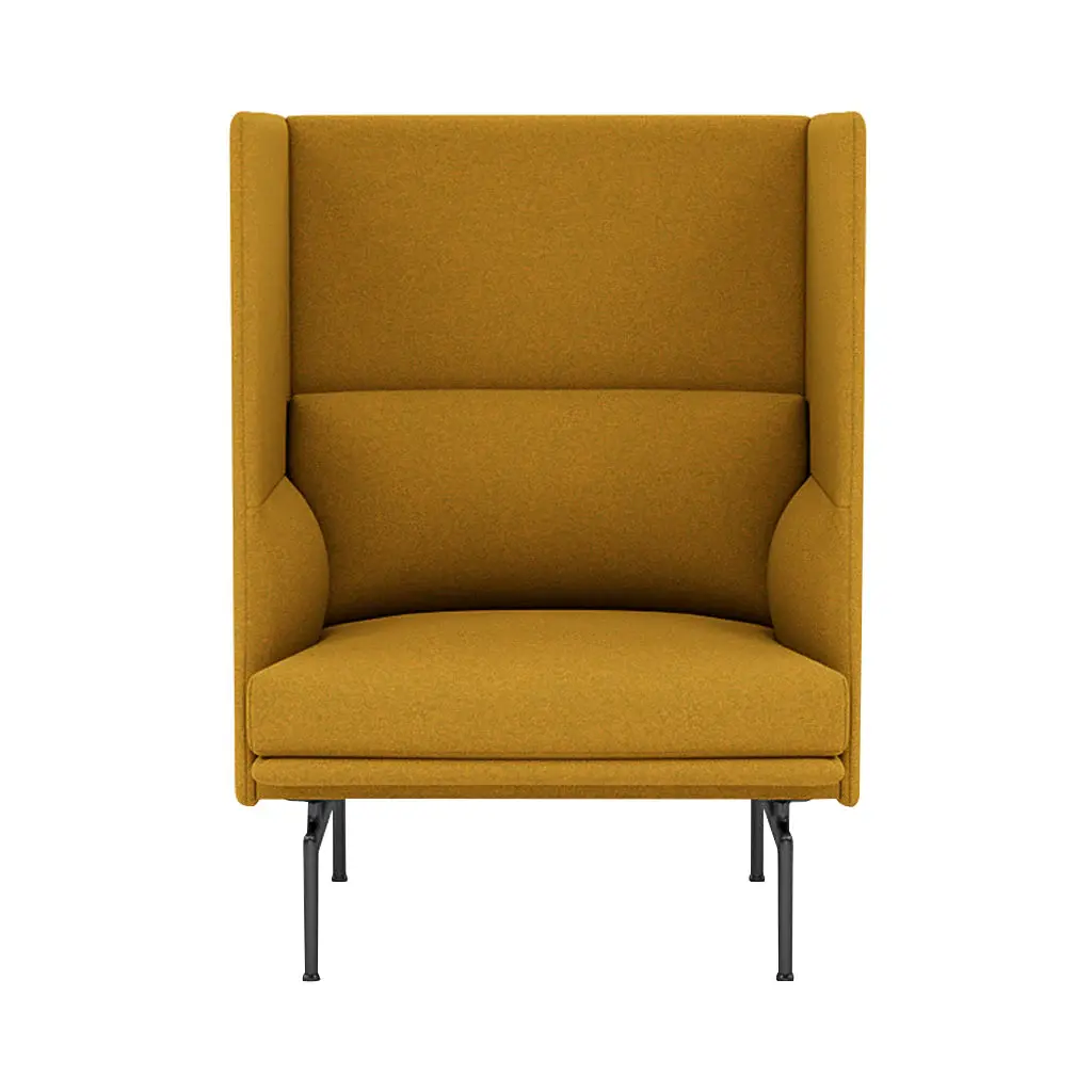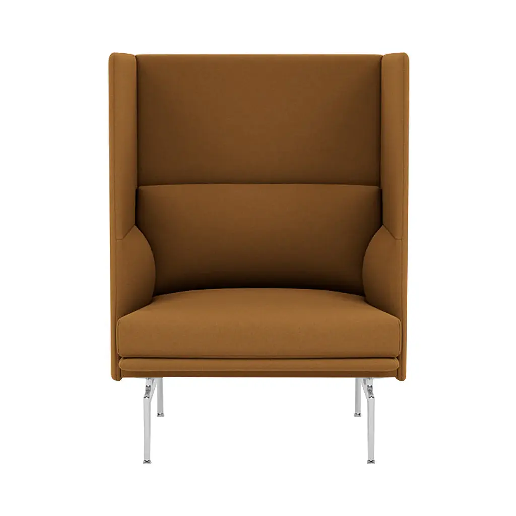Muuto’s single-seater provides a maximum zone of individual privacy in Outline Highback’s tallest version, with its mix of soft, deeply proportioned comfort and protective boxlike enclosure. Offering a range of custom upholstery choices and trim legs in polished or black aluminum, it makes a welcome haven in open-plan areas.